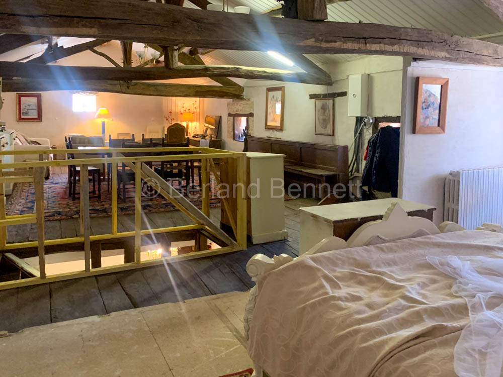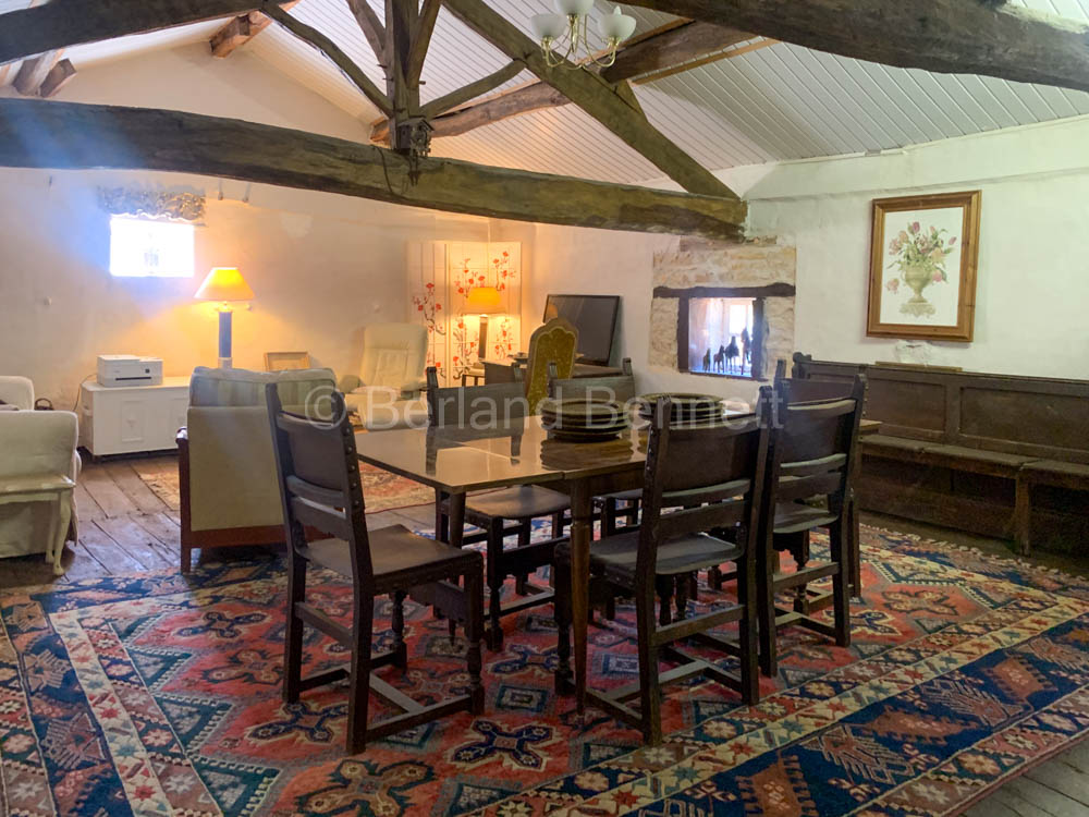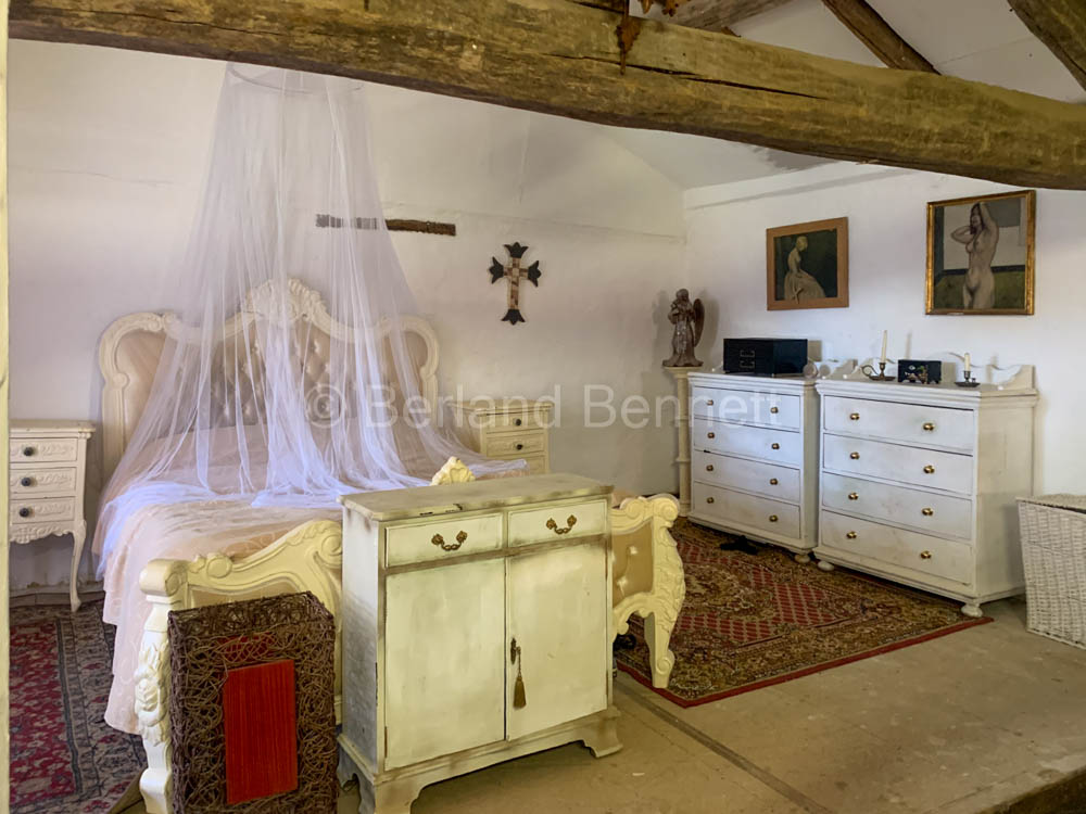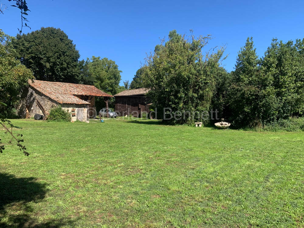 The property also includes a house to renovate, ideal for a guesthouse or gîte project, with a 17 m² room featuring a stone fireplace, concrete floor, and built-in cupboard. The outbuildings add great character and potential: former stables of 27 m² with two adjoining rooms, a large barn attached to the main house with a 20 m² workshop, and several small traditional sheds.