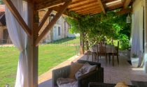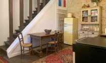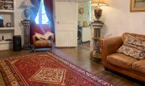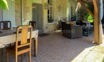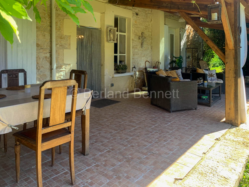 The main house welcomes you with a lovely 30 m² covered terrace, tiled and perfect for enjoying long summer days. Inside, a warm and inviting 22.6 m² kitchen/dining room with wooden flooring features a solid wood staircase and access to a wine cellar below. A separate WC with washbasin. A bright 21.2 m² living room with parquet floors, a traditional stone fireplace and a wood-burning stove creates a cozy atmosphere, while a 17 m² ground-floor bedroom with private shower room and WC.