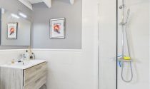 Upstairs are two large bedrooms, one with ensuite shower room and Wc and the other with ensuite Wc. There is a large storage room as well on the first floor making it possible to make both rooms ensuite.