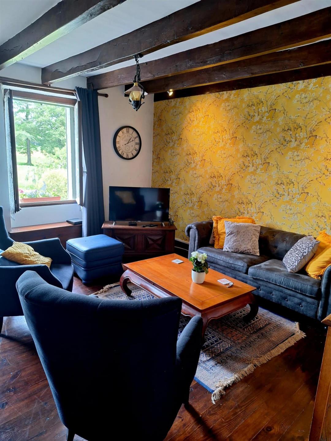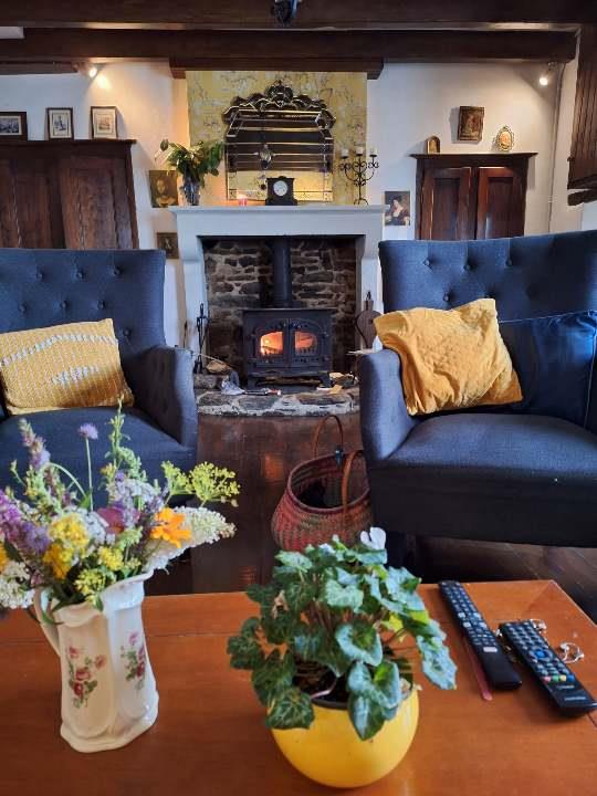 The large main lounge of 23m² maintains original charm with exposed beams and stonework. It boasts a large wood burner and French doors leading to a private courtyard, terrace, Bbq area and garden with Hot Tub. The ground floor has a spacious fully fitted kitchen, Wc and bathroom.