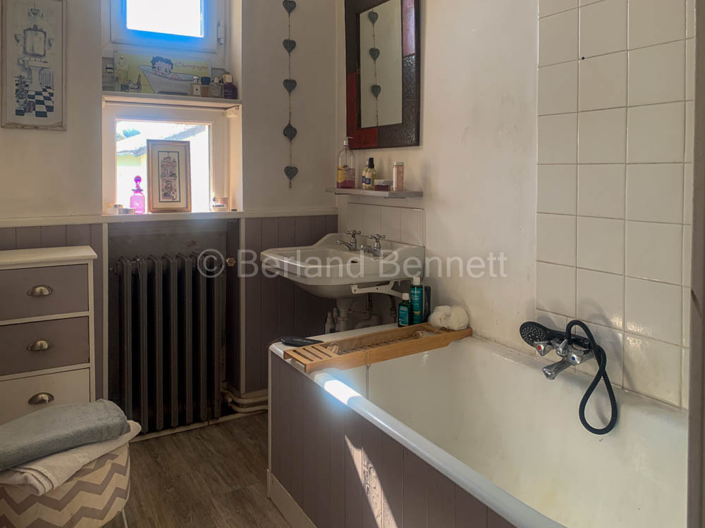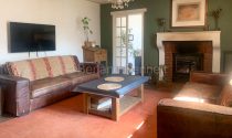 Upstairs, the landing leads to two large, light-filled bedrooms and a family bathroom with WC. The property is fitted with PVC double-glazed windows, benefits from oil-fired central heating, and is equipped with a modern septic system installed in 2017.