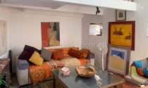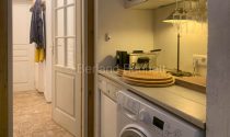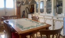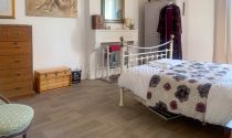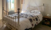 On the ground floor, the entrance opens into a contemporary kitchen with a central island, seamlessly flowing into a bright tiled dining room with direct access to the terrace. The spacious 27 m² living room, featuring elegant wooden floors and a stone fireplace with wood-burning insert, provides a warm and inviting atmosphere, while a generous study with mezzanine offers the perfect space for working or creative projects. This level also includes a hallway with utility area, a bedroom, and a WC with washbasin.