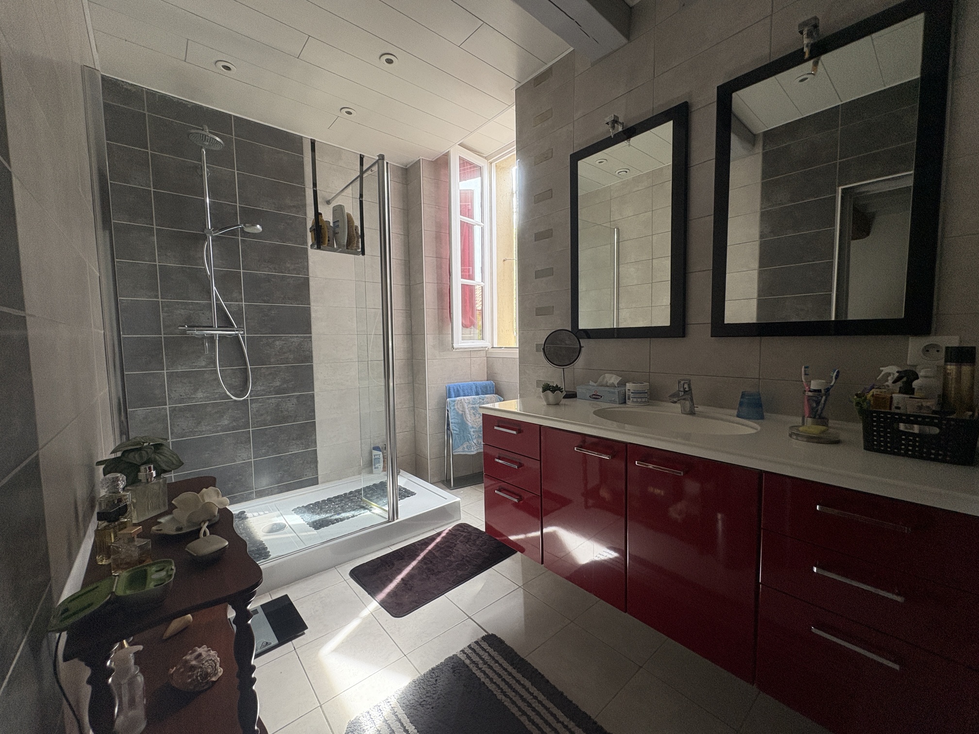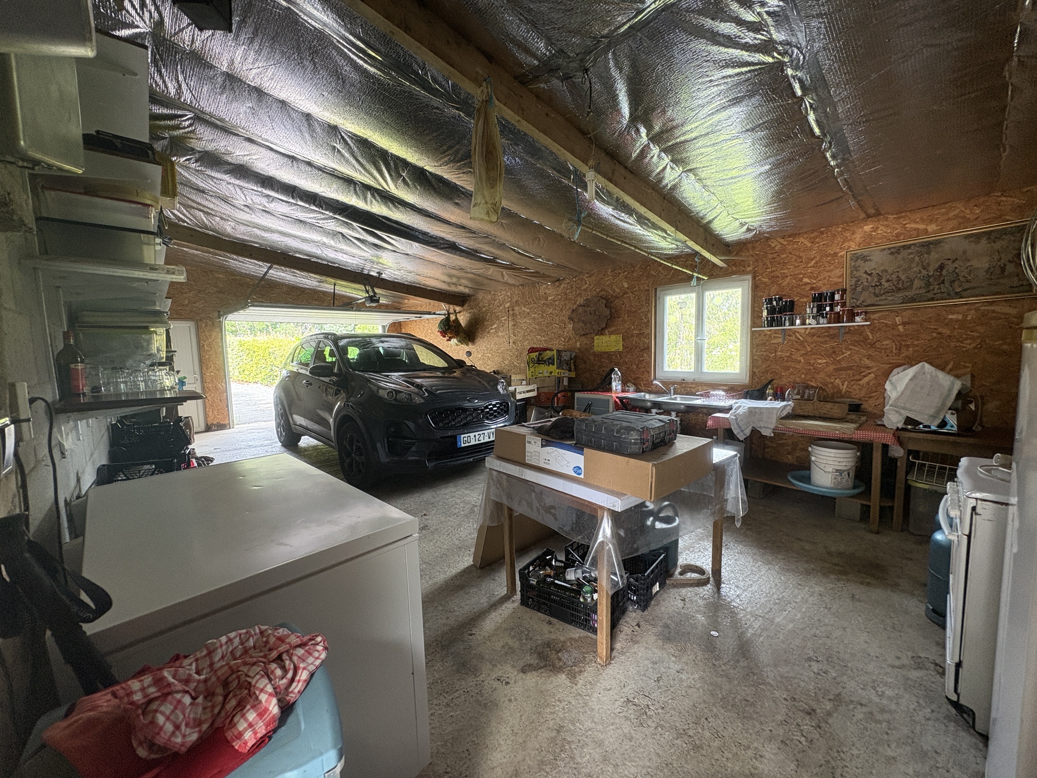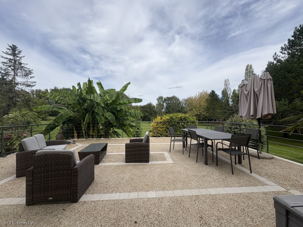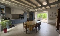 Kitchen : 38,35m2, tiles, french windows to terrace.
