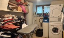 Living Room : 35,84m2, parquet and fireplace with pellet boiler.