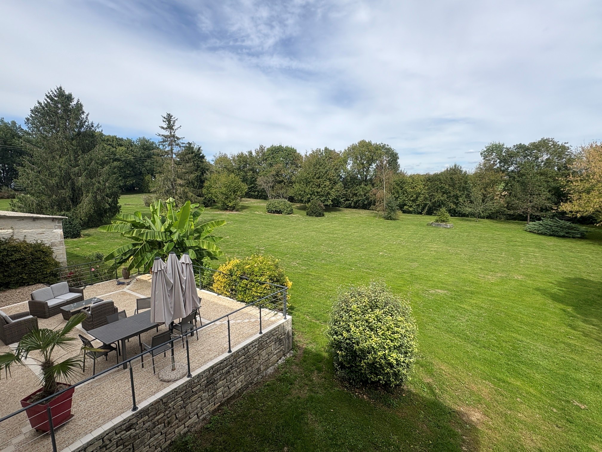 The farming activity continues discreetly on-site, now managed by the next generation. There are no animals or disturbances — the home enjoys a calm and serene setting.