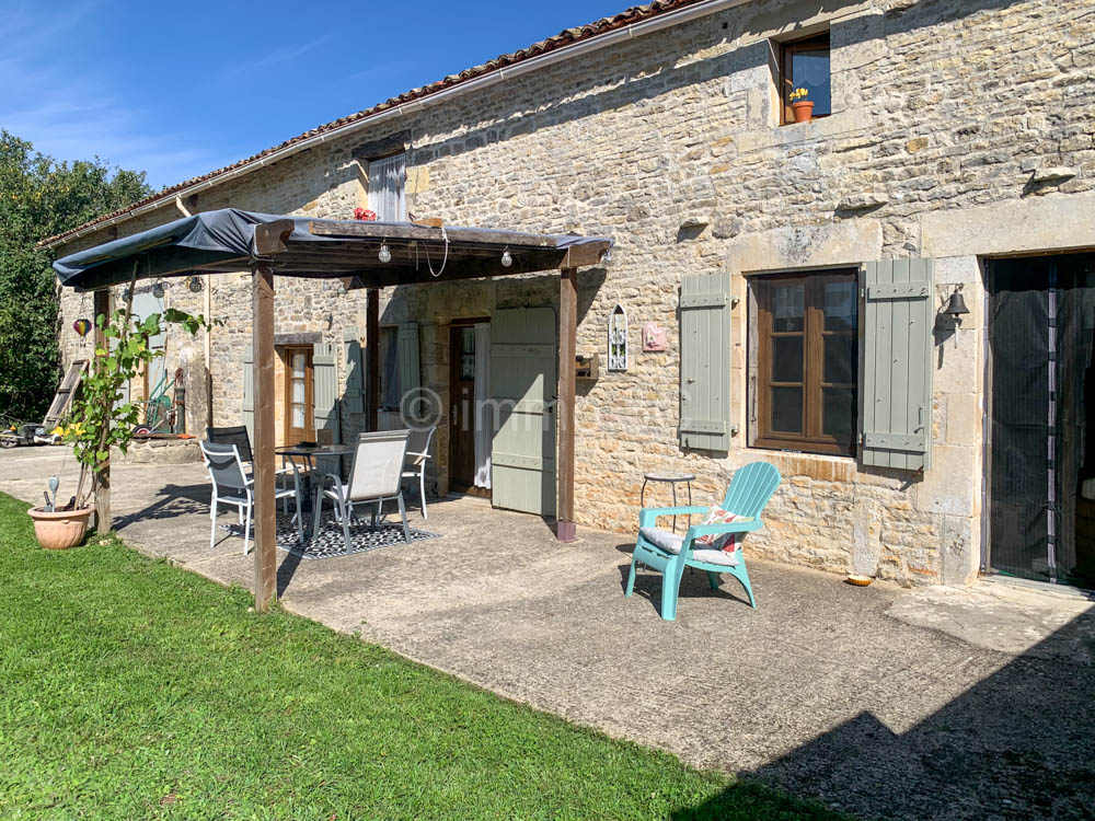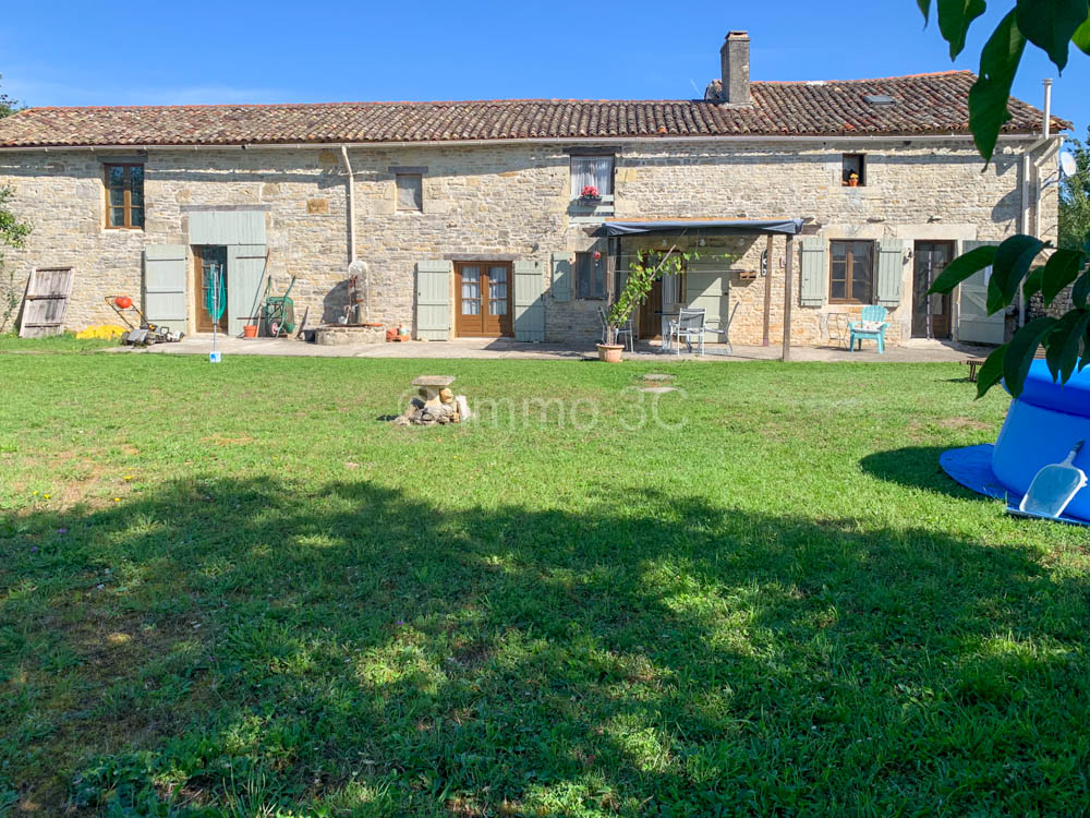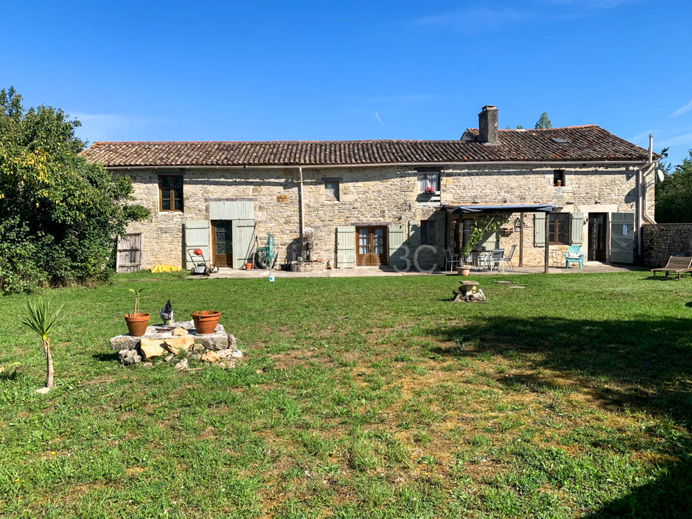 Located on the edge of a peaceful village between Lezay and Couhé, this beautifully renovated stone house offering 131 m² of living space and the potential for further extension, it features generous volumes filled with natural light and an inviting atmosphere.