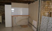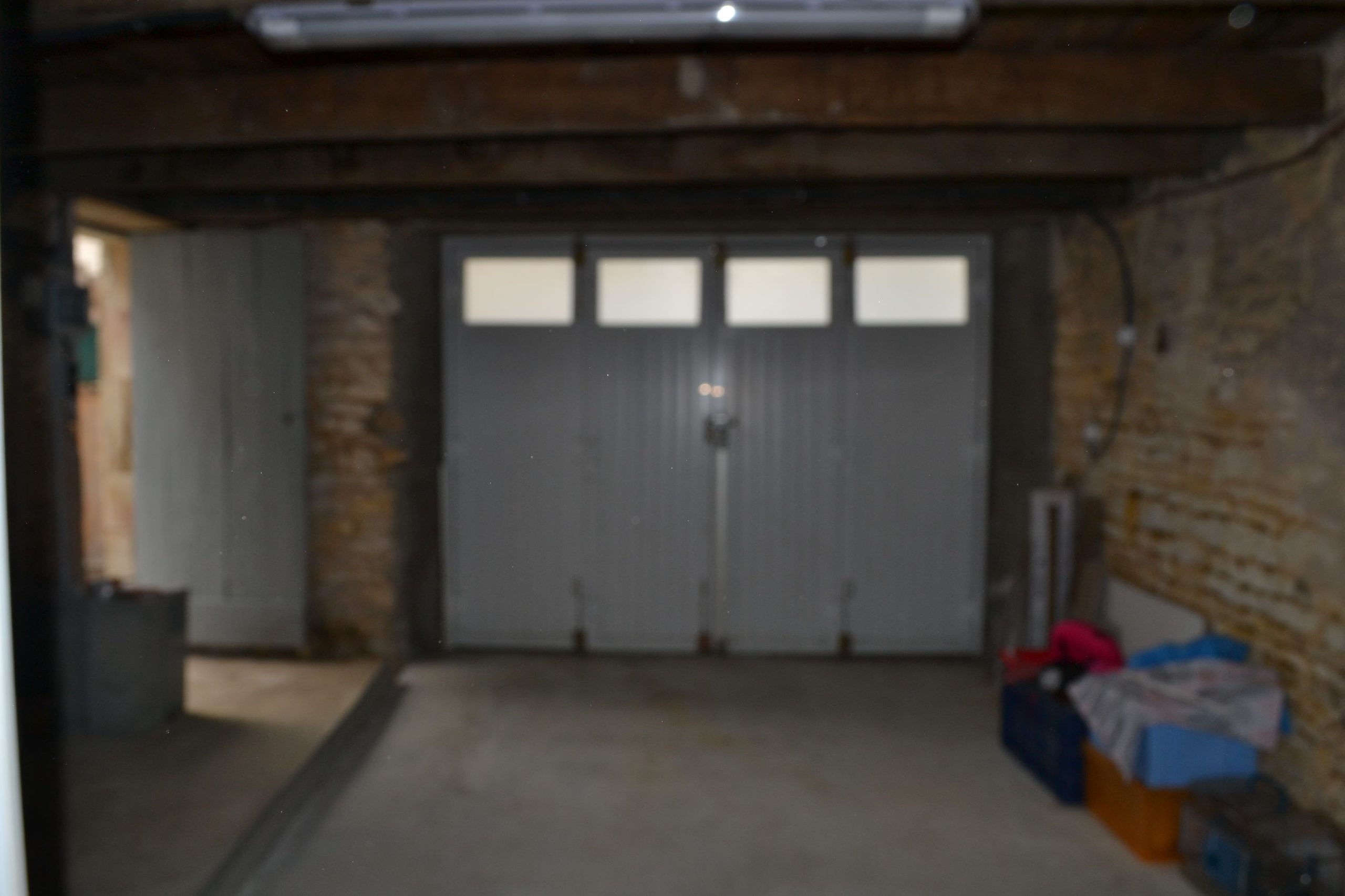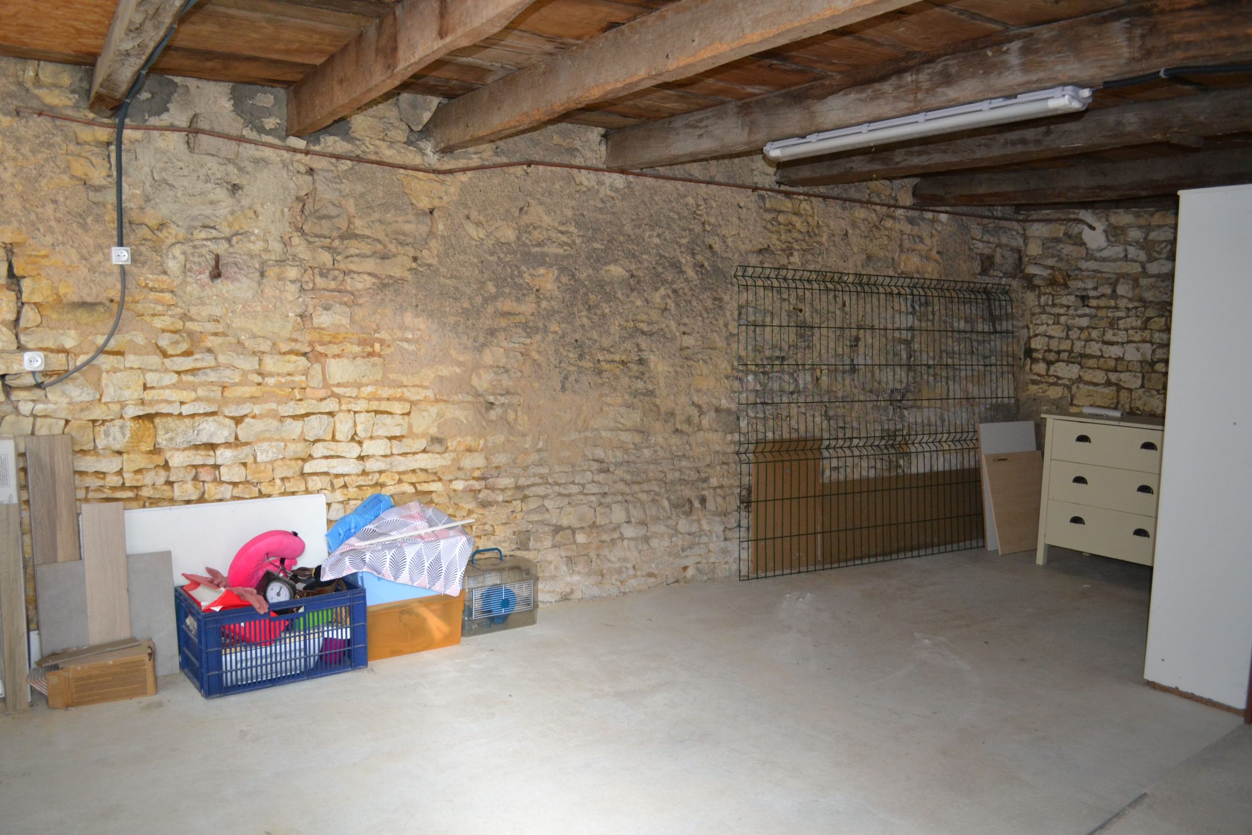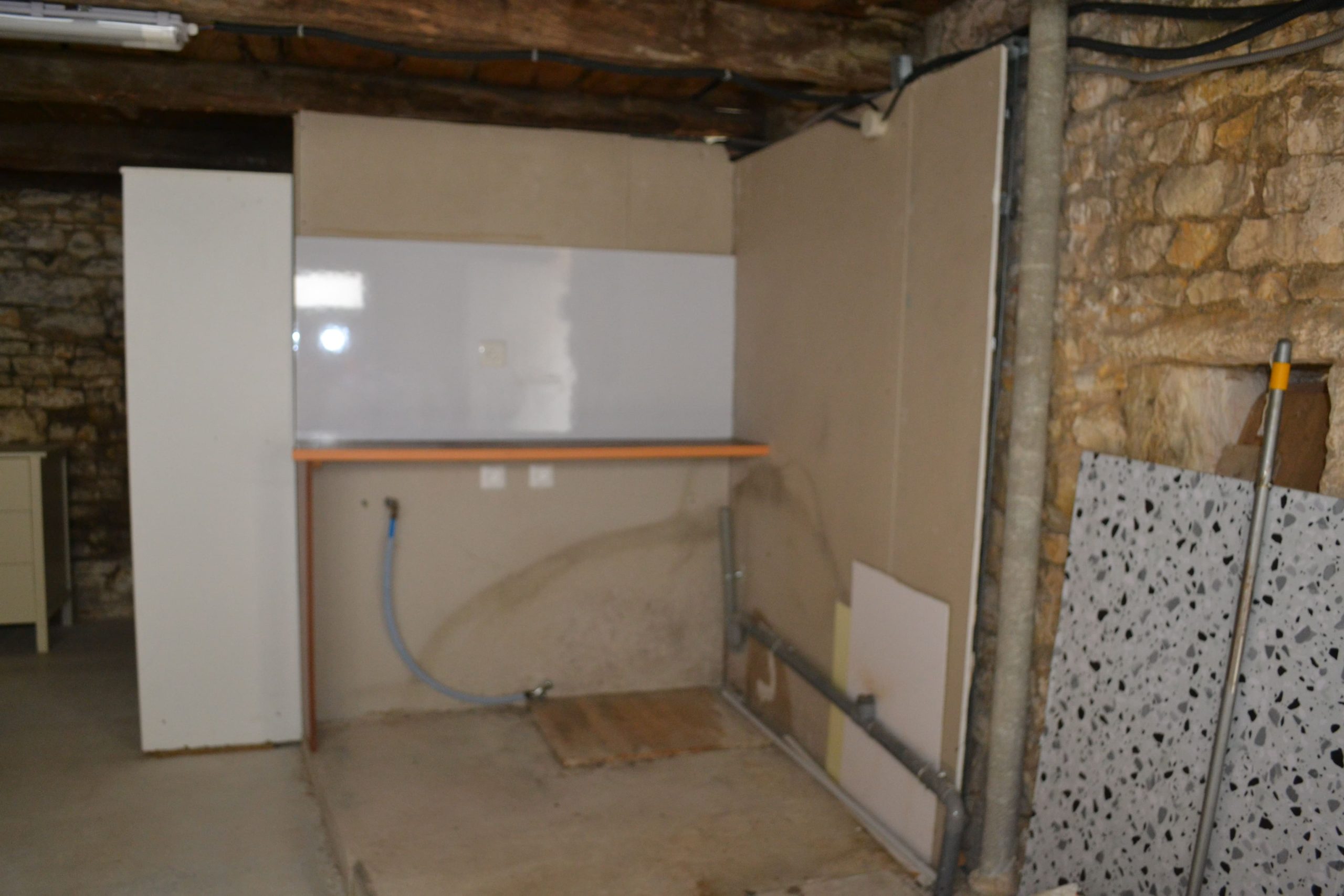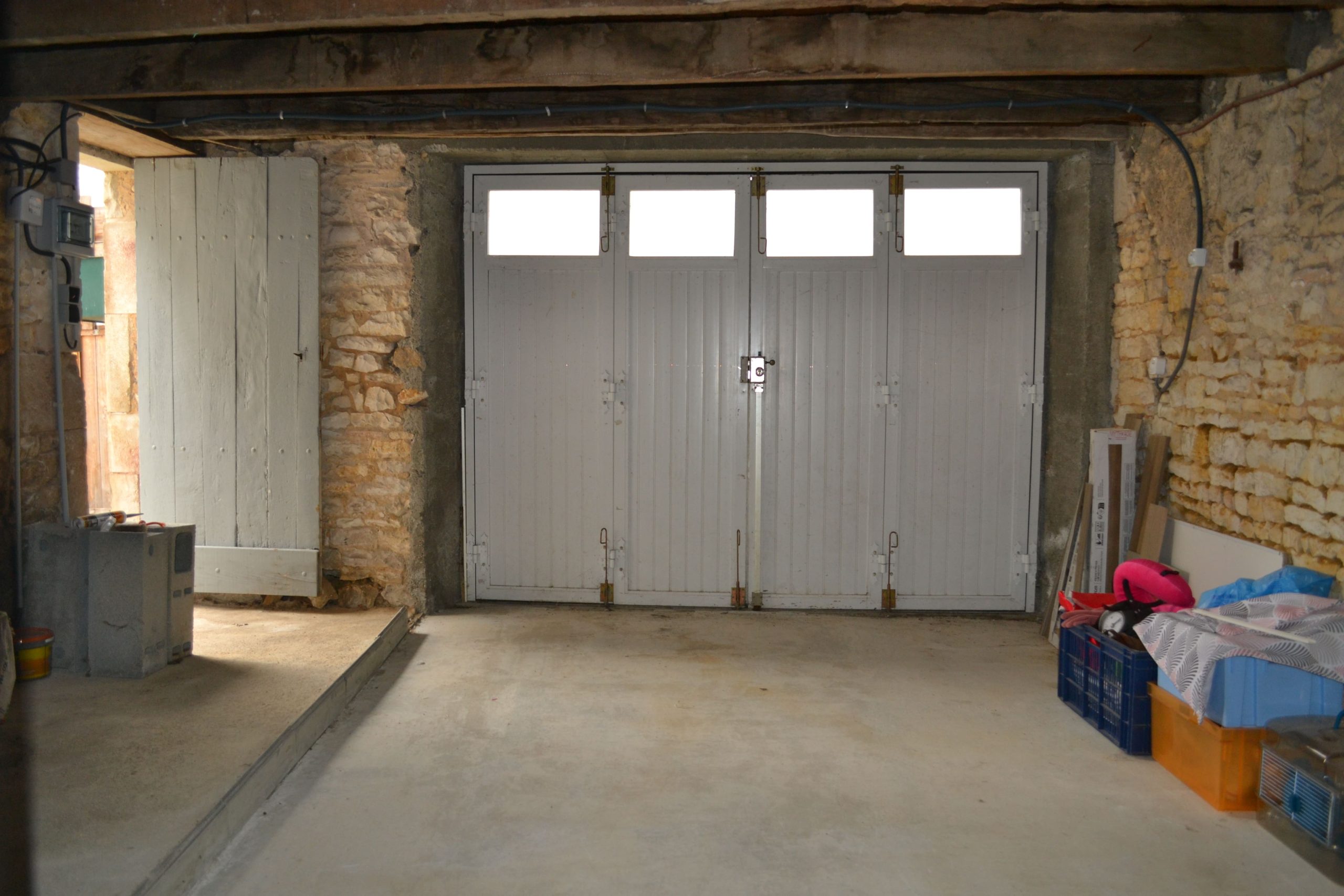 Stone garage (fits one car) with laundry area, attic, WC & storage