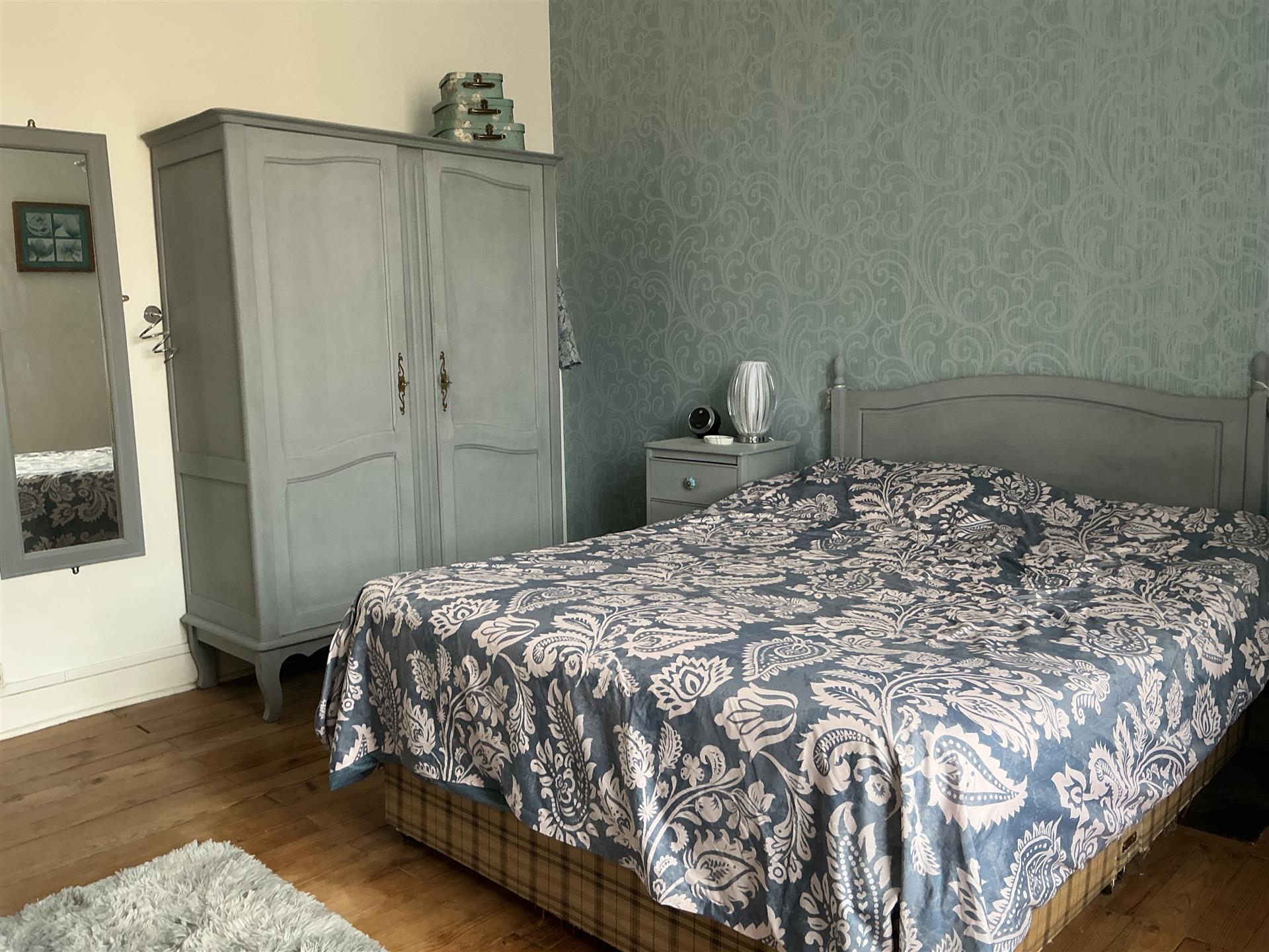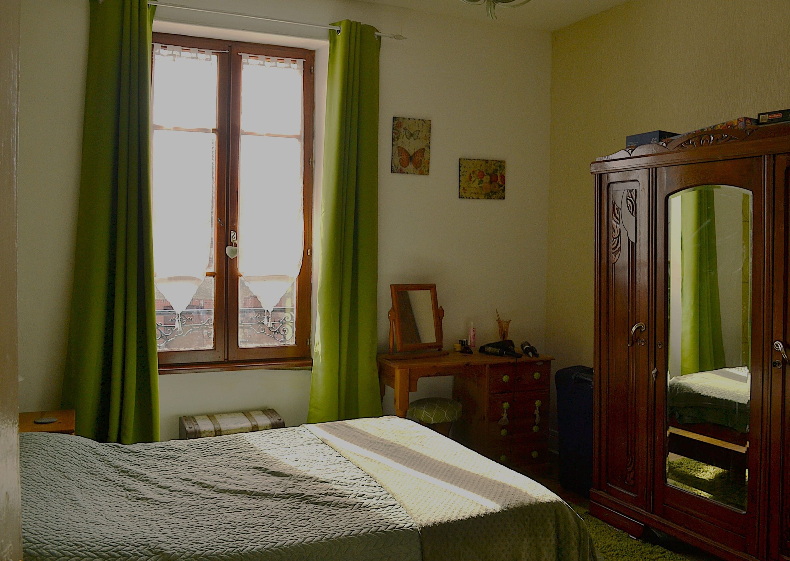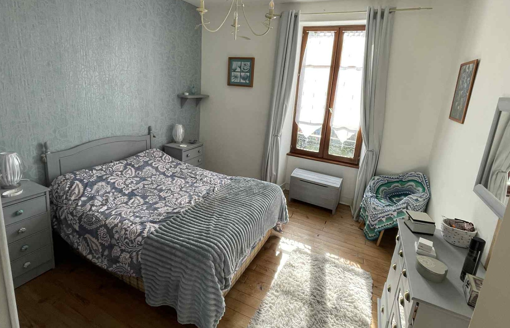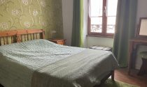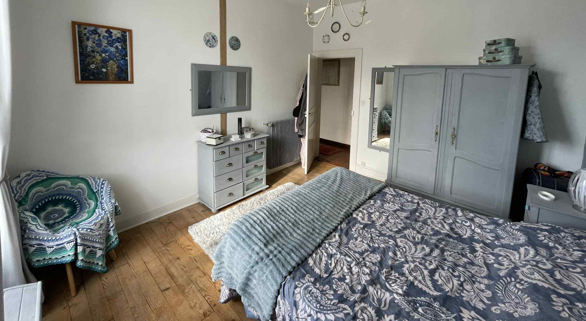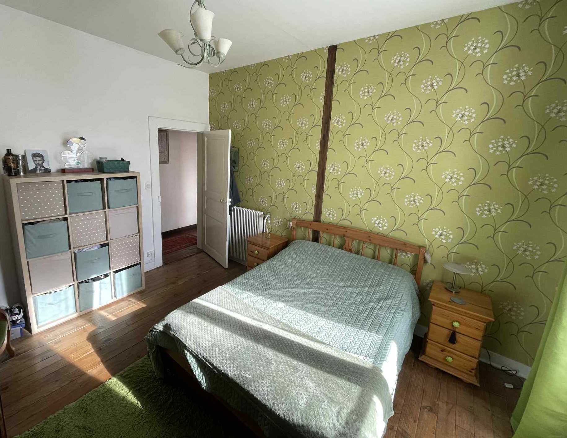Three beautiful bright and spacious bedrooms (14 m², 14 m², and 16 m²) with original wooden floors and elegant light fixtures.