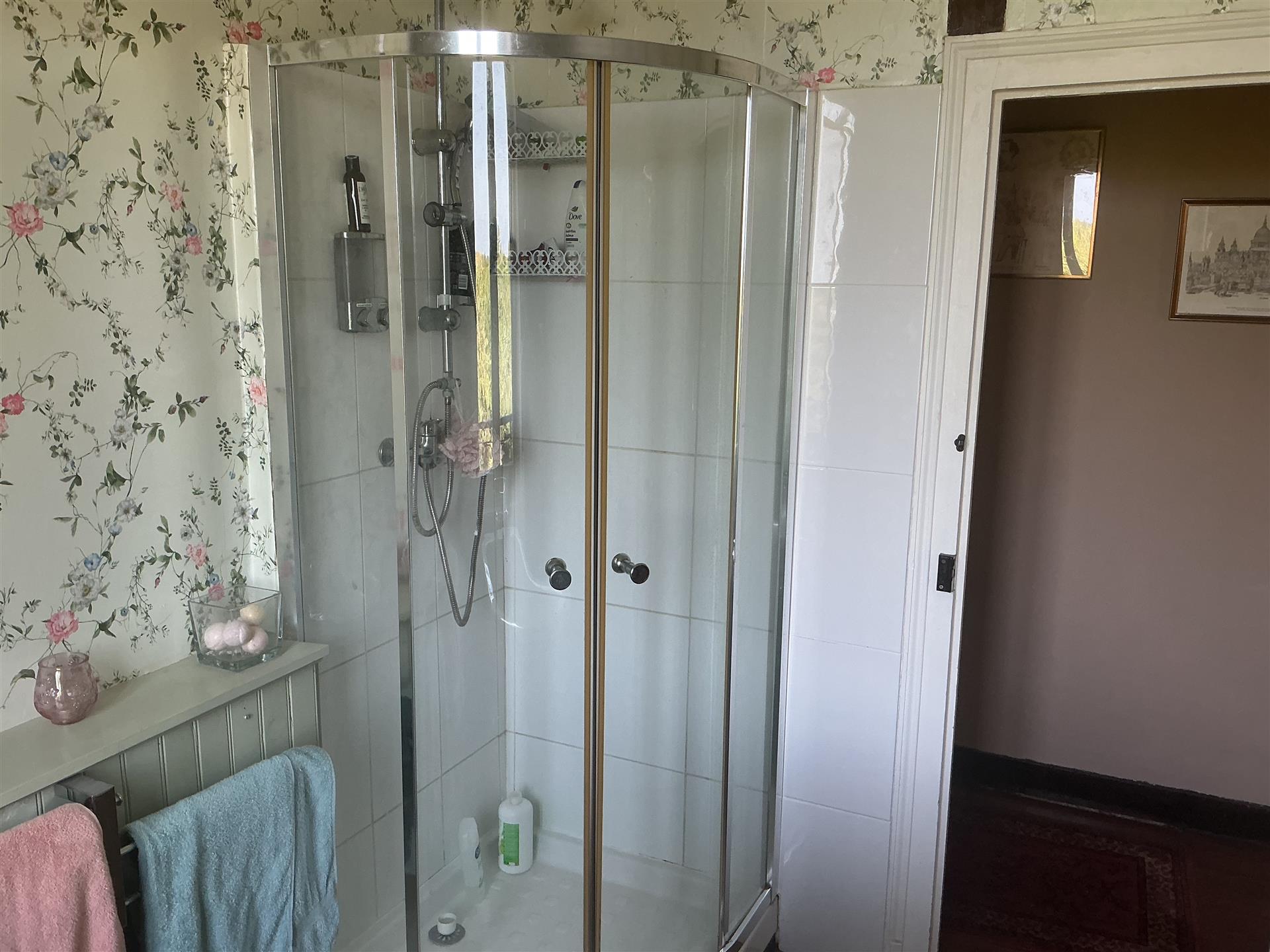 A bathroom with both bathtub and separate shower.(+1 WC)