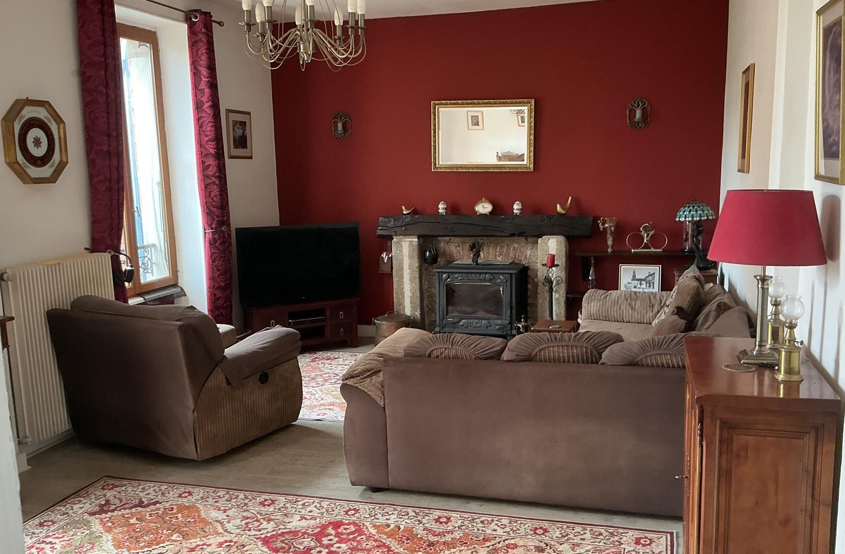A cosy 25 m² living room with wood-burning stove, ideal for warm winter evenings and with a pleasant view over the garden.