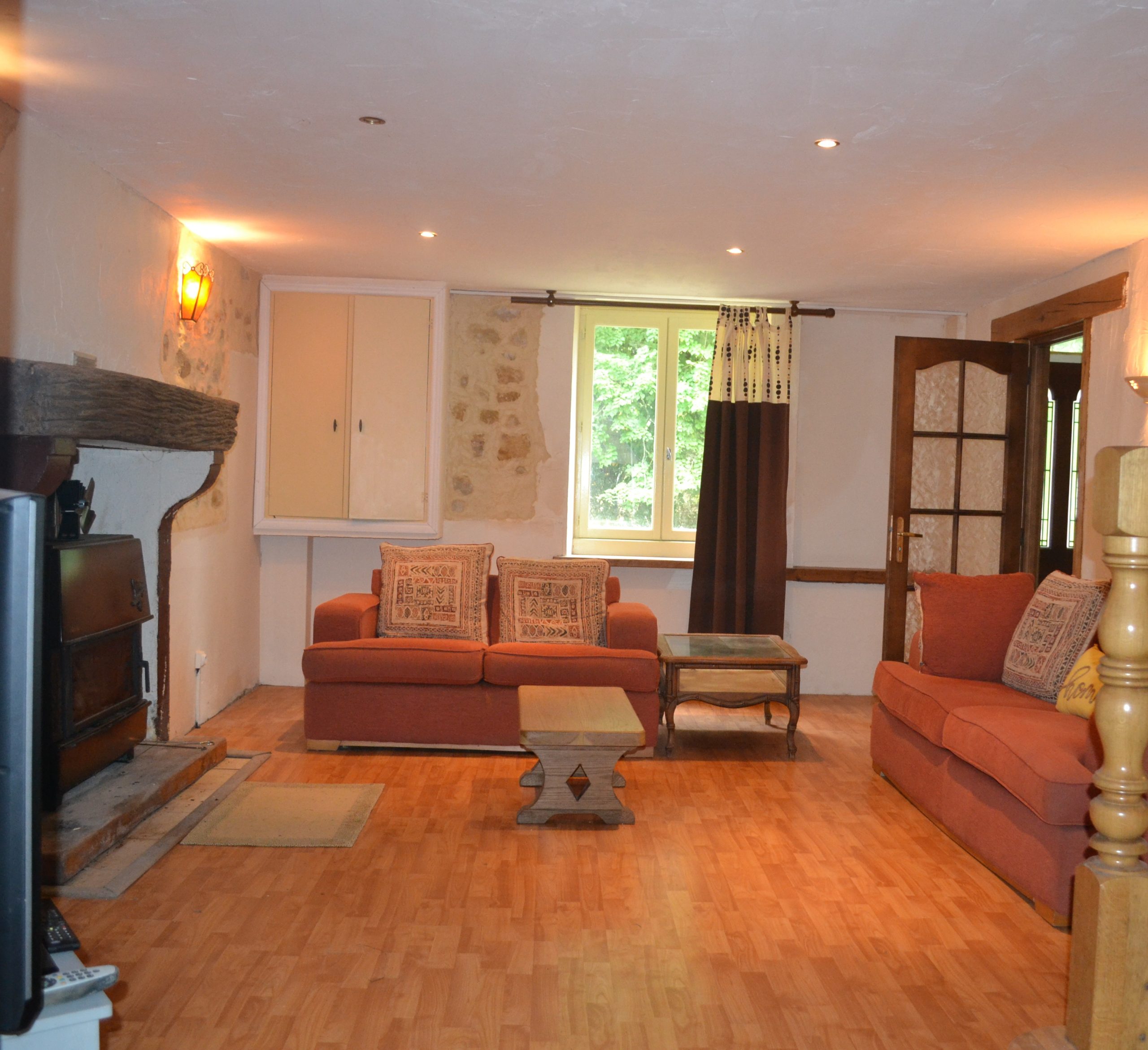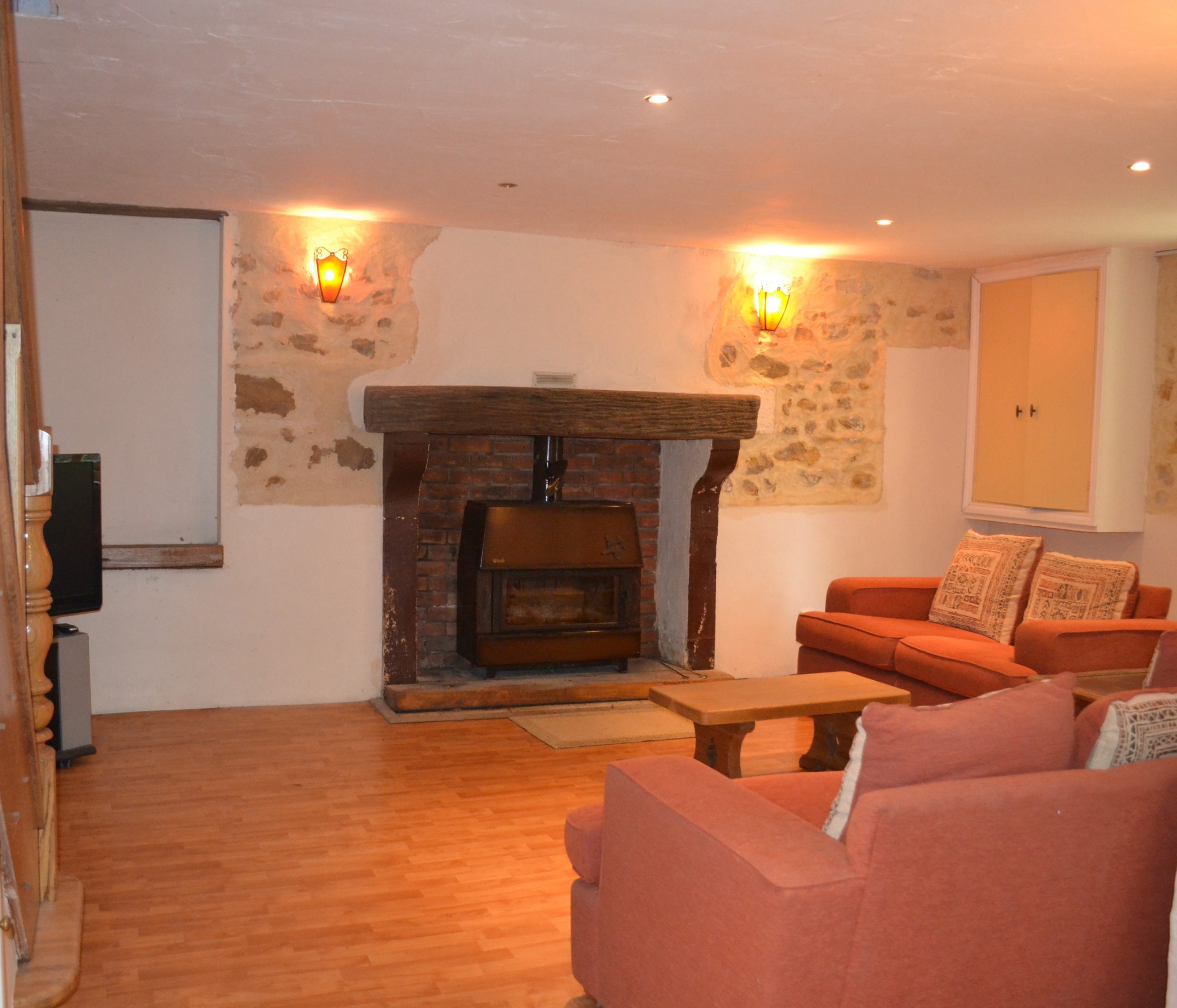 Large, cozy living room with wood-burning stove for warm winter evenings by the fire