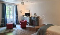 Upstairs, a large 38.8 m² landing currently used as a sleeping area could easily be converted into a study or relaxing lounge. A second spacious bedroom of 33 m², also with original wooden floors, and a 9 m² shower room with WC. A 32 m² attic offers excellent potential for conversion into a third bedroom or additional living space, depending on your needs.