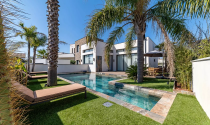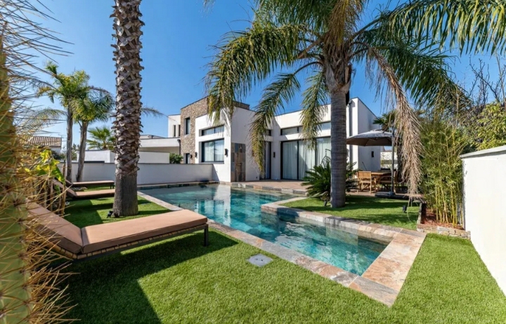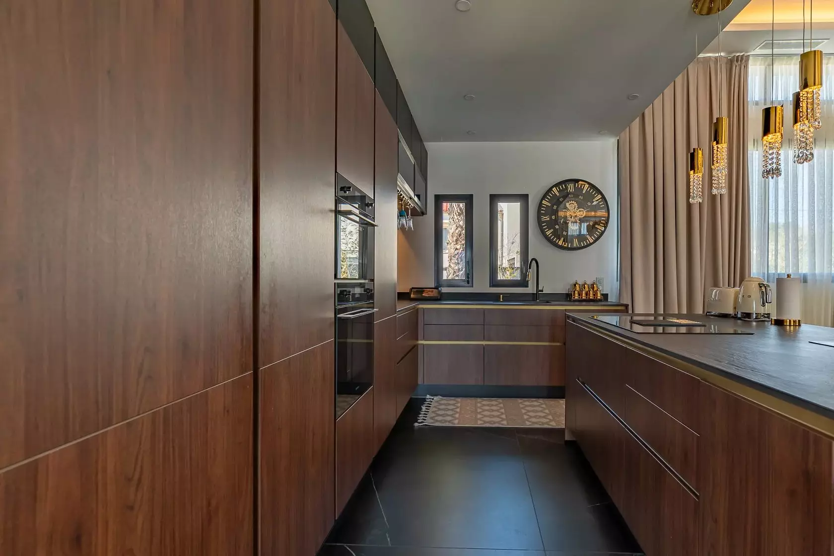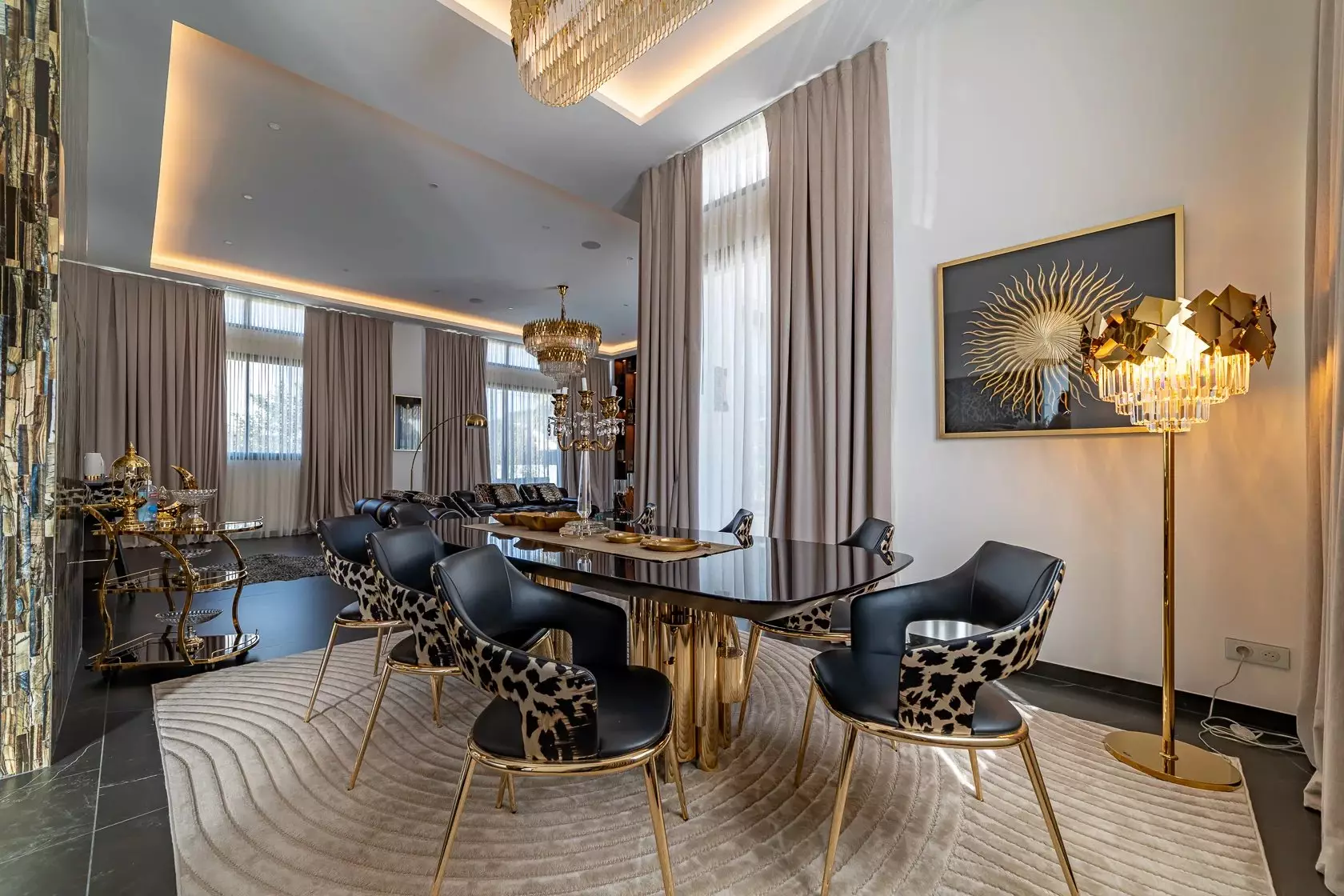 With 218 sqm (2,350 sq ft) of living space set on a 745 sqm (8,020 sq ft) plot, this residence stands out for its modern design and premium finishes. The spectacular 100 sqm (1,075 sq ft) living area with 5-meter ceilings includes a fully fitted open-plan kitchen, dining area, and lounge opening onto the garden and pool through floor-to-ceiling windows.