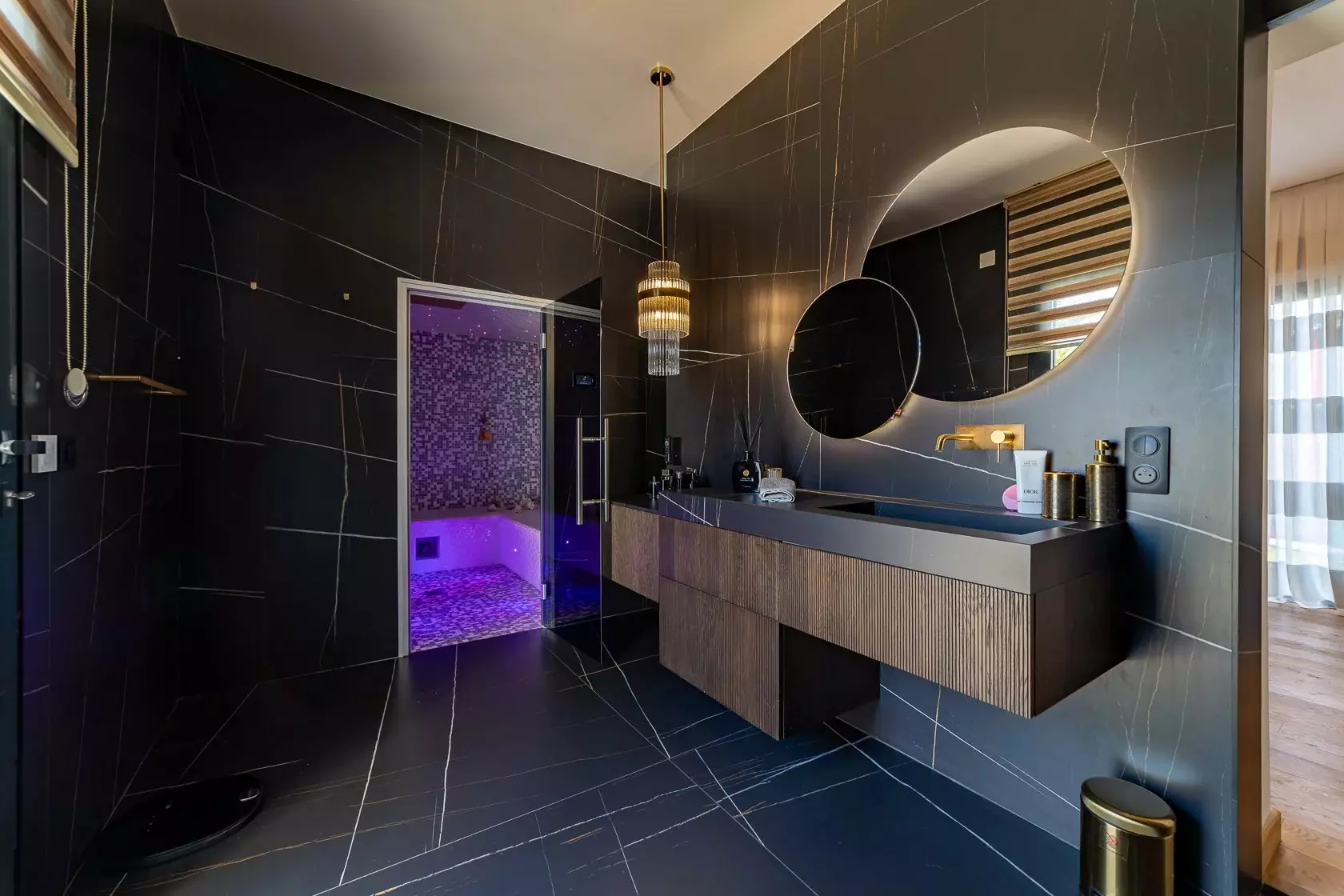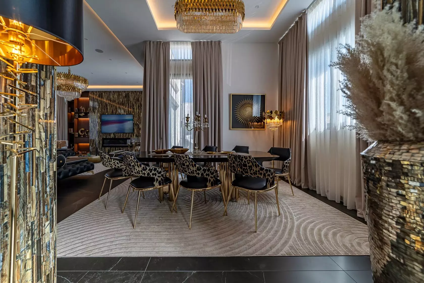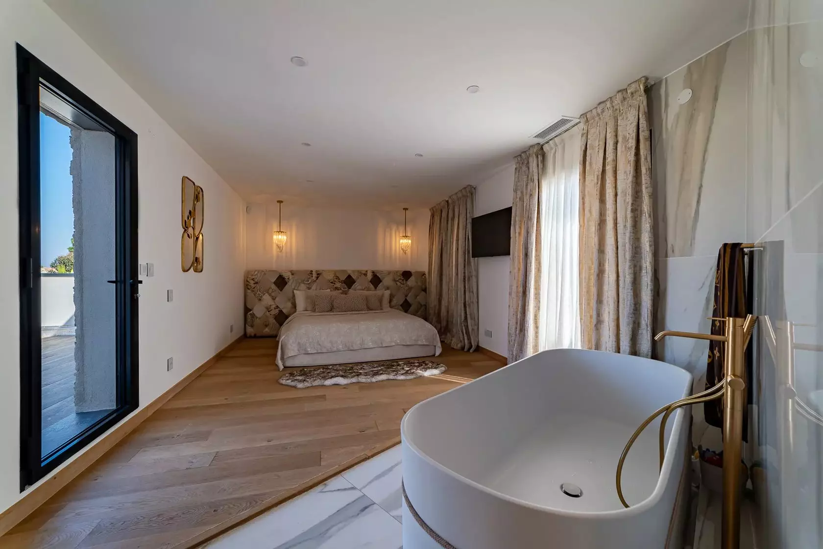 With 218 sqm (2,350 sq ft) of living space set on a 745 sqm (8,020 sq ft) plot, this residence stands out for its modern design and premium finishes. The spectacular 100 sqm (1,075 sq ft) living area with 5-meter ceilings includes a fully fitted open-plan kitchen, dining area, and lounge opening onto the garden and pool through floor-to-ceiling windows.