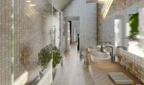 Bathroom with double washbasins and large shower