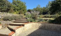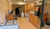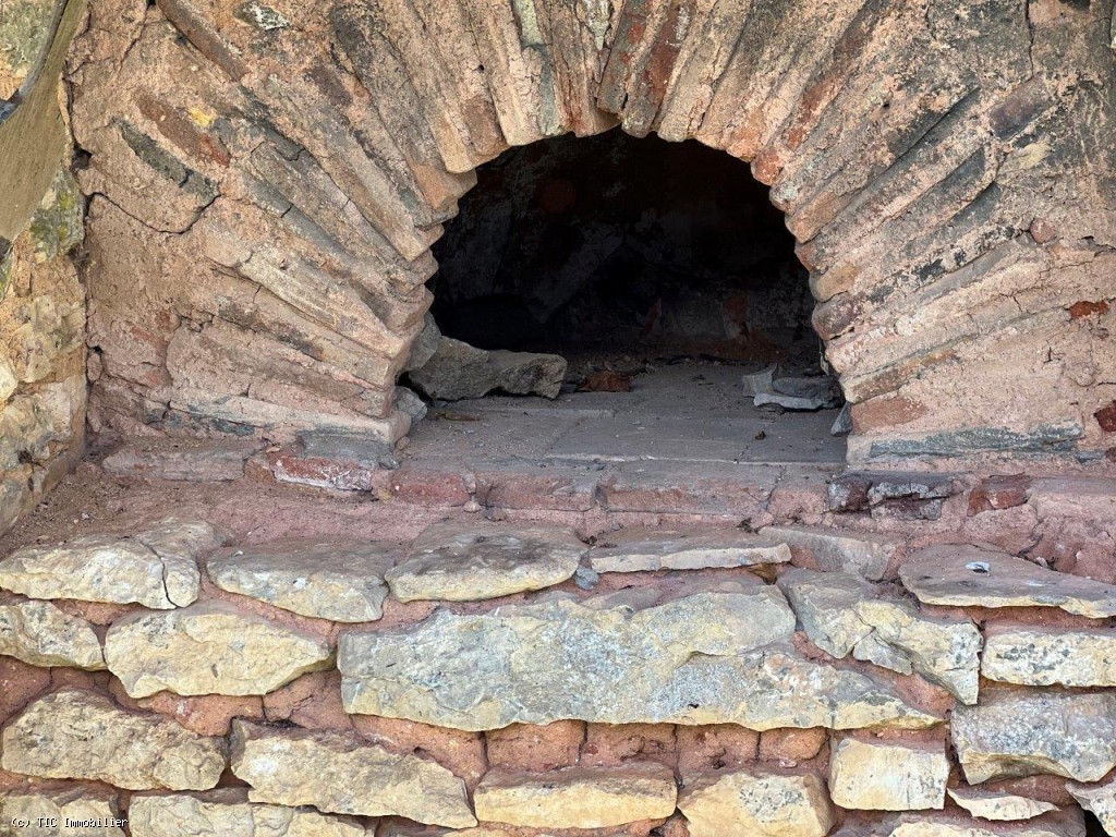 -Fitted kitchen (10m²): tiled floor, exposed stonework (storage space above)
