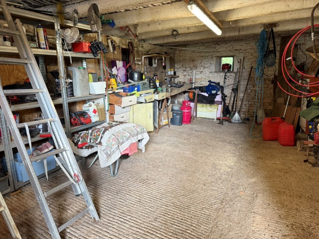 -Barn (50m²) with mezzanine storage and room for a car and trailer, utility room (18m²)