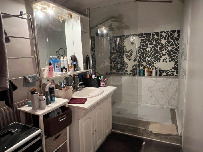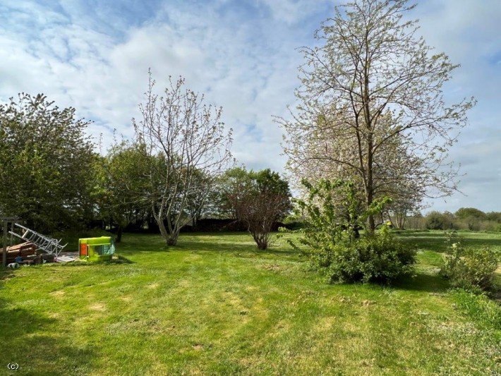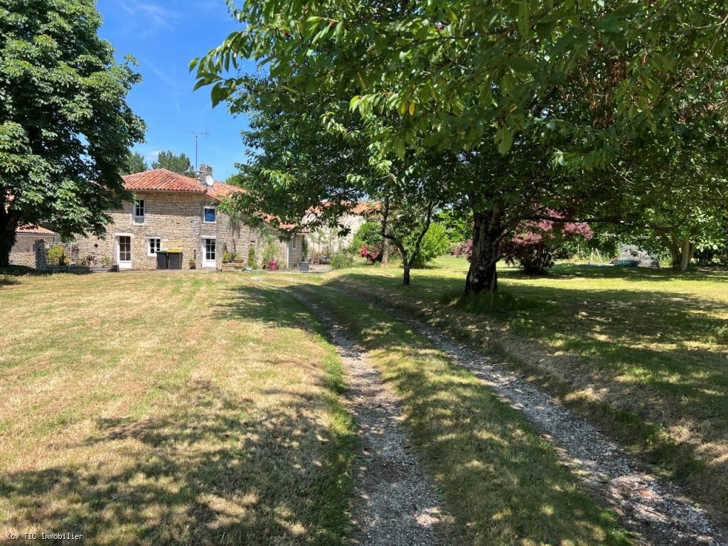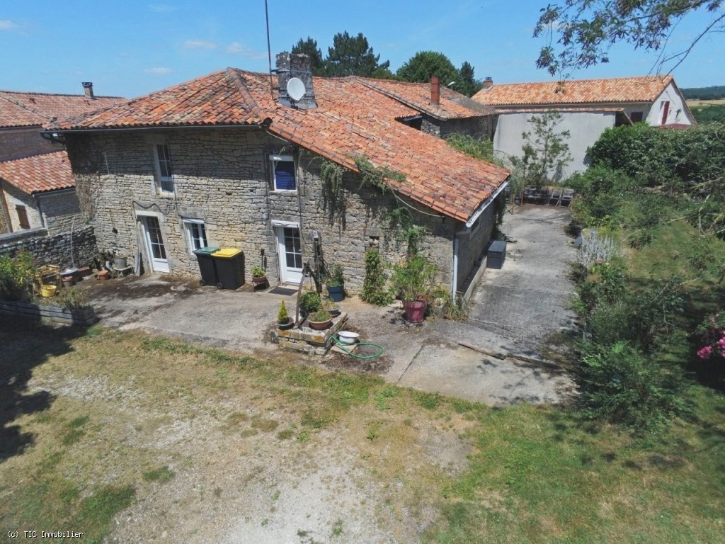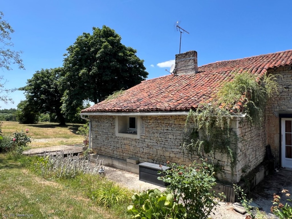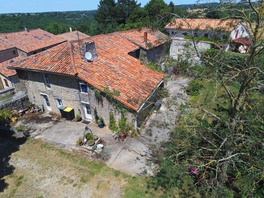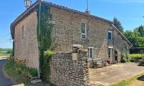 Beautiful stone house with superb views over the countryside near Nanteuil-en-Vallée. This house is full of character and originality and offers a huge living room with a superb fireplace, a modern kitchen, a large garage adjoining the living room and five bedrooms upstairs.