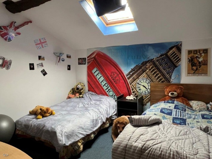 -Bedroom 3 (13m²): carpet, velux, exposed beams