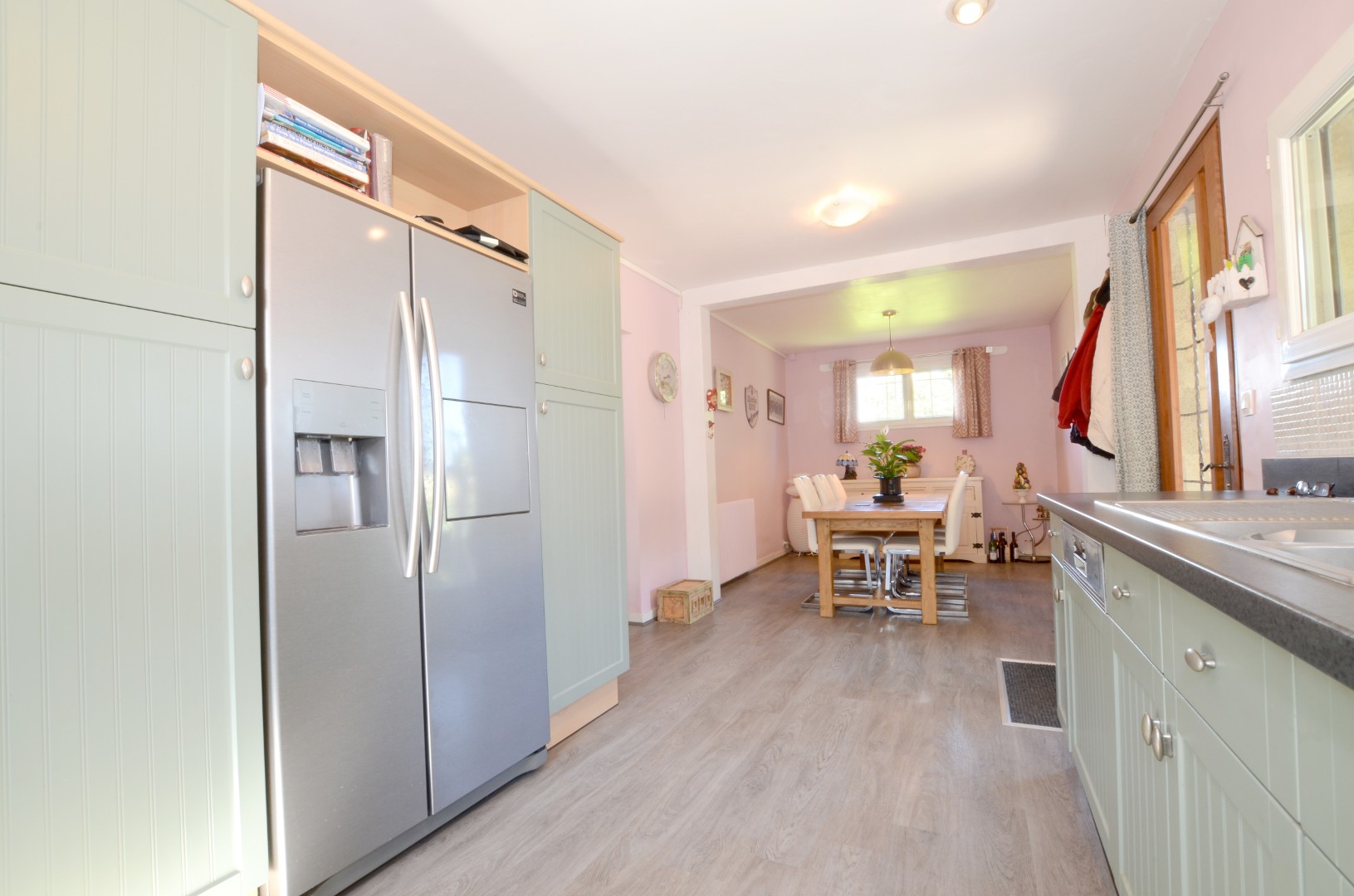 Inside, you’ll find a large kitchen and dining area with a fully fitted kitchen — ideal for cooking and entertaining . The room opens into a spacious living room with a cozy wood-burning stove , perfect for winter evenings. Enjoy the sunshine all year round in the bright veranda, overlooking the garden .