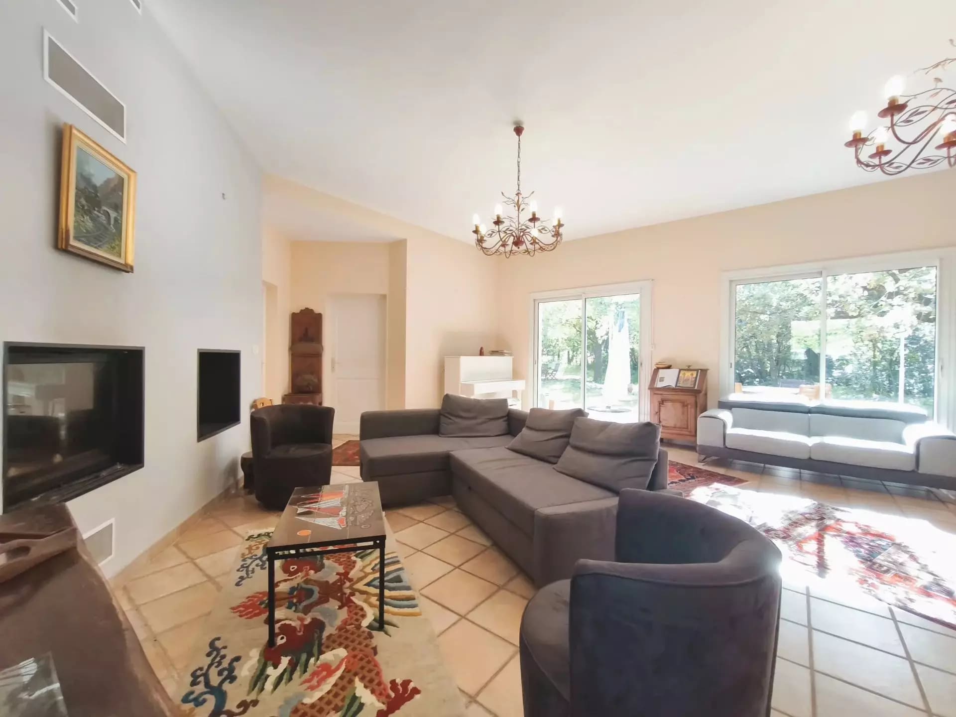 A long natural driveway leads through olive and pine trees to the main residence, bathing the arrival in a sense of peace and privacy. The house, fully preserved since its construction in 1990, offers volumes bathed in light, high ceilings, and large bay windows opening onto nature.