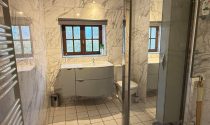 -Bedroom (13m²): tiled floor, exposed beams, with ensuite Shower Room (4m²): tiled floor, WC, washbasin, walk-in shower
