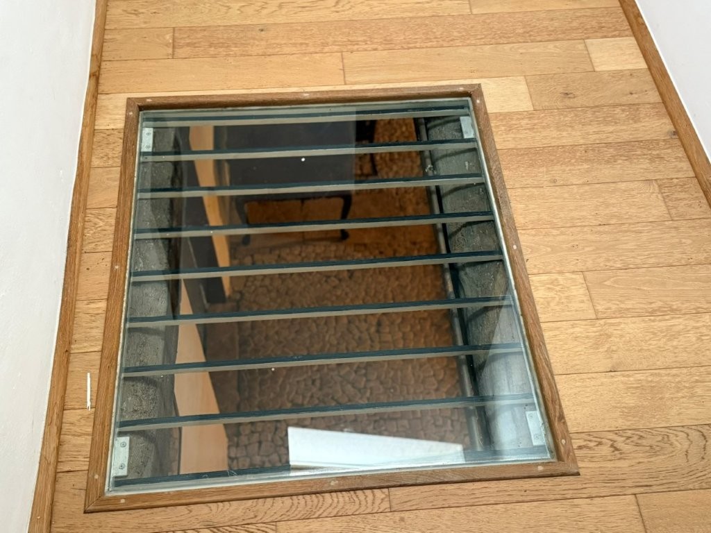 Upstairs, the main residence is complemented by two additional bedrooms, a bathroom, and a subtle architectural feature: a small window set into the hallway floor, offering a gentle glimpse bringing light down to the lounge.