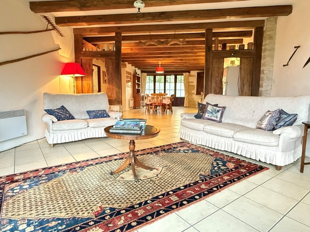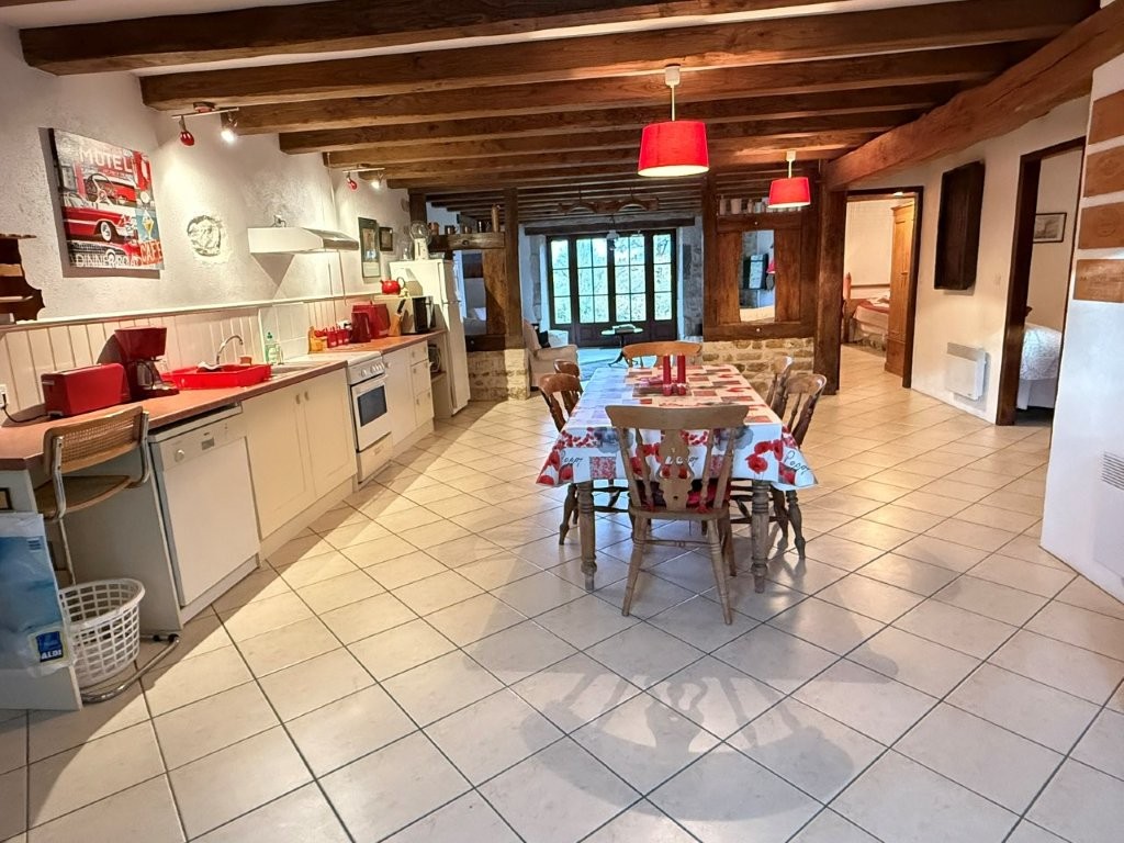 Exclusive to TIC Immobilier, step into this beautifully renovated character home, where authentic period features blend seamlessly with modern comfort. The spacious lounge sets the tone with its original cœur de demoiselle flooring, wood burner, and exposed beams. From here, glide into the first kitchen–dining room, complete with flagstone floors and a second wood burner—perfect for creating a warm, inviting atmosphere for meals with family and friends.