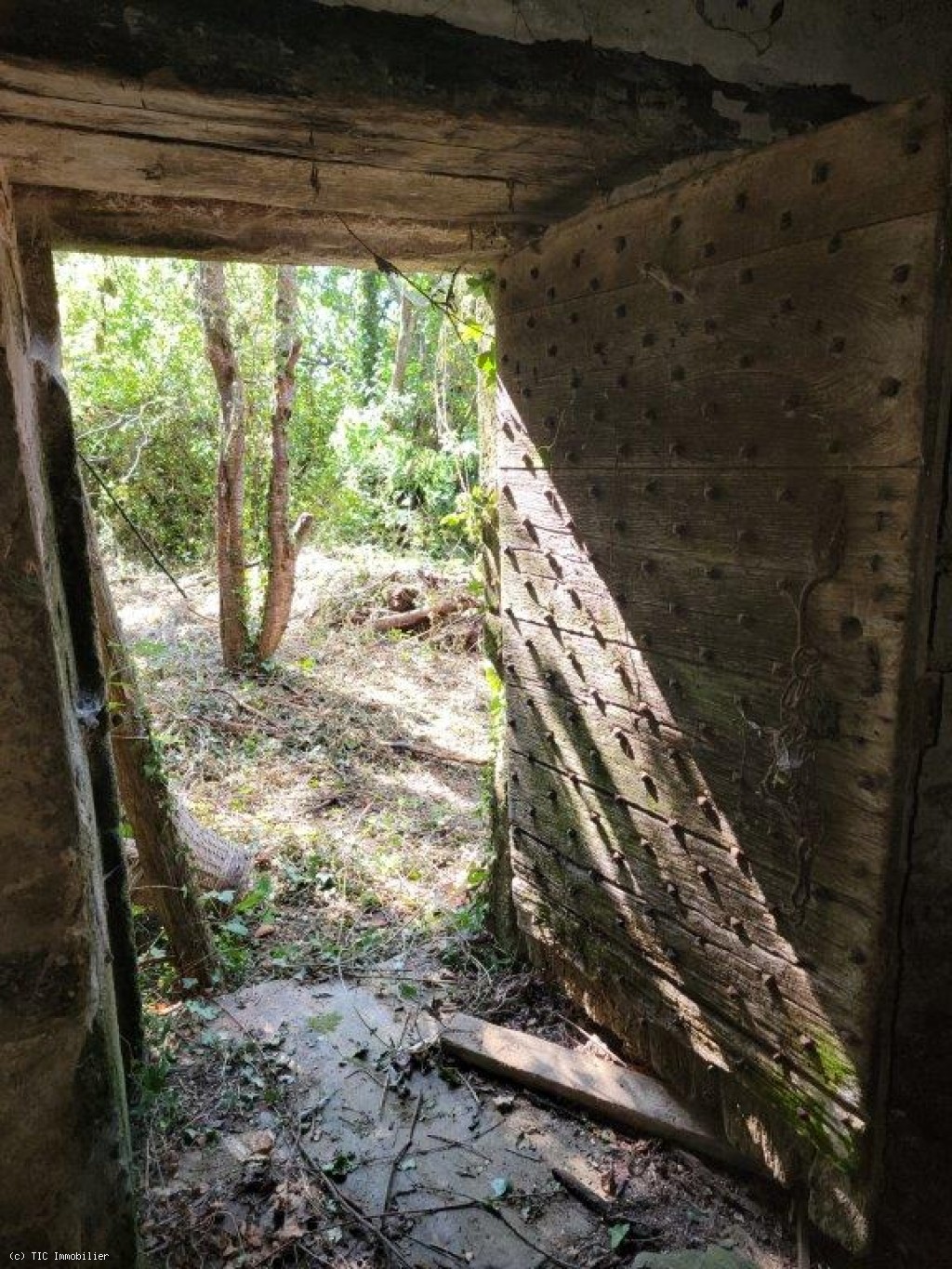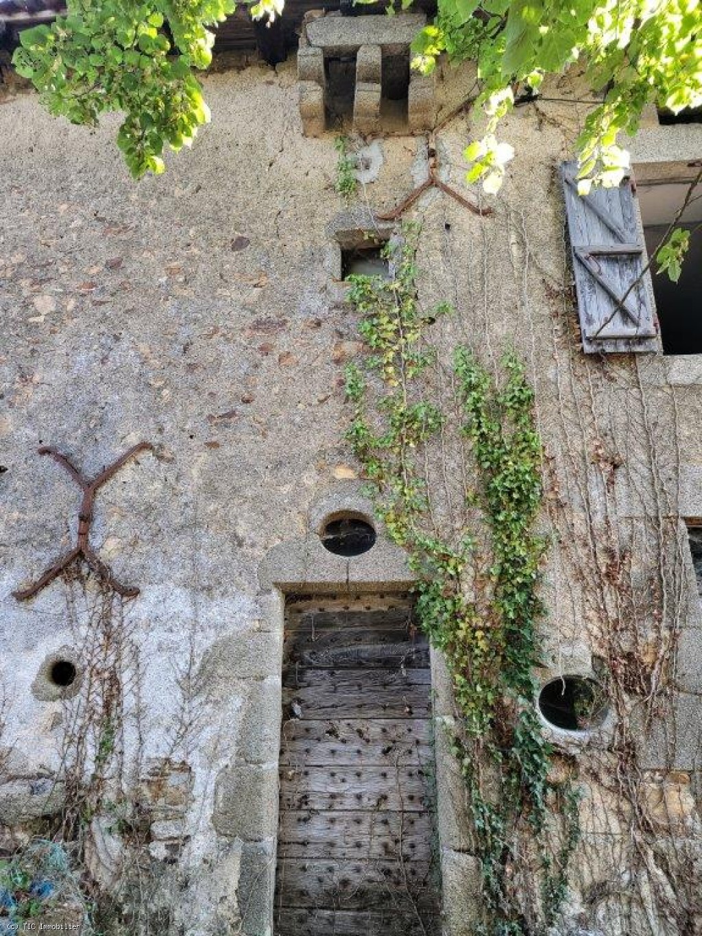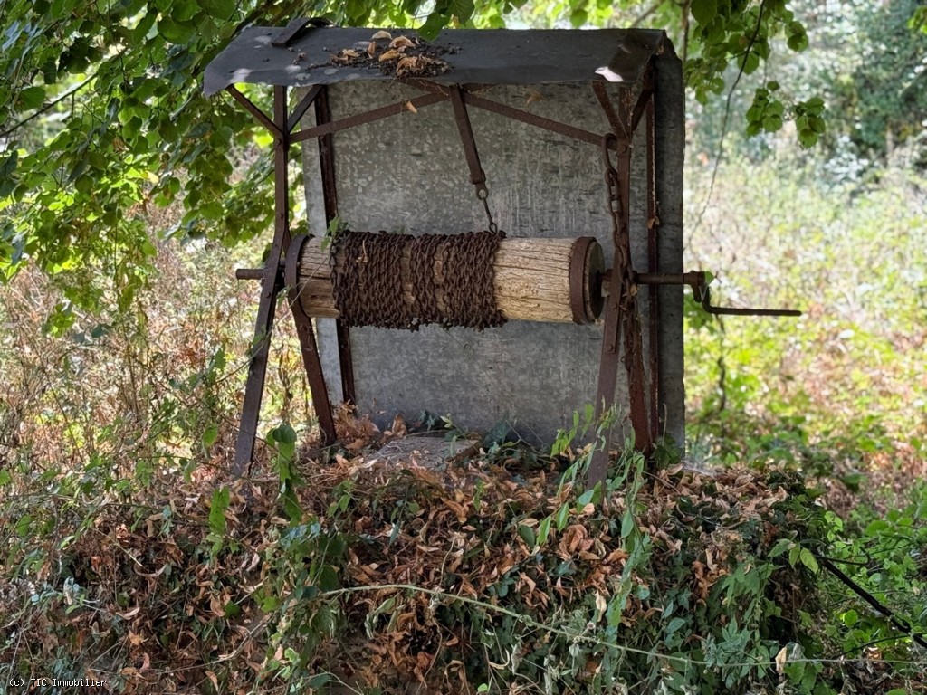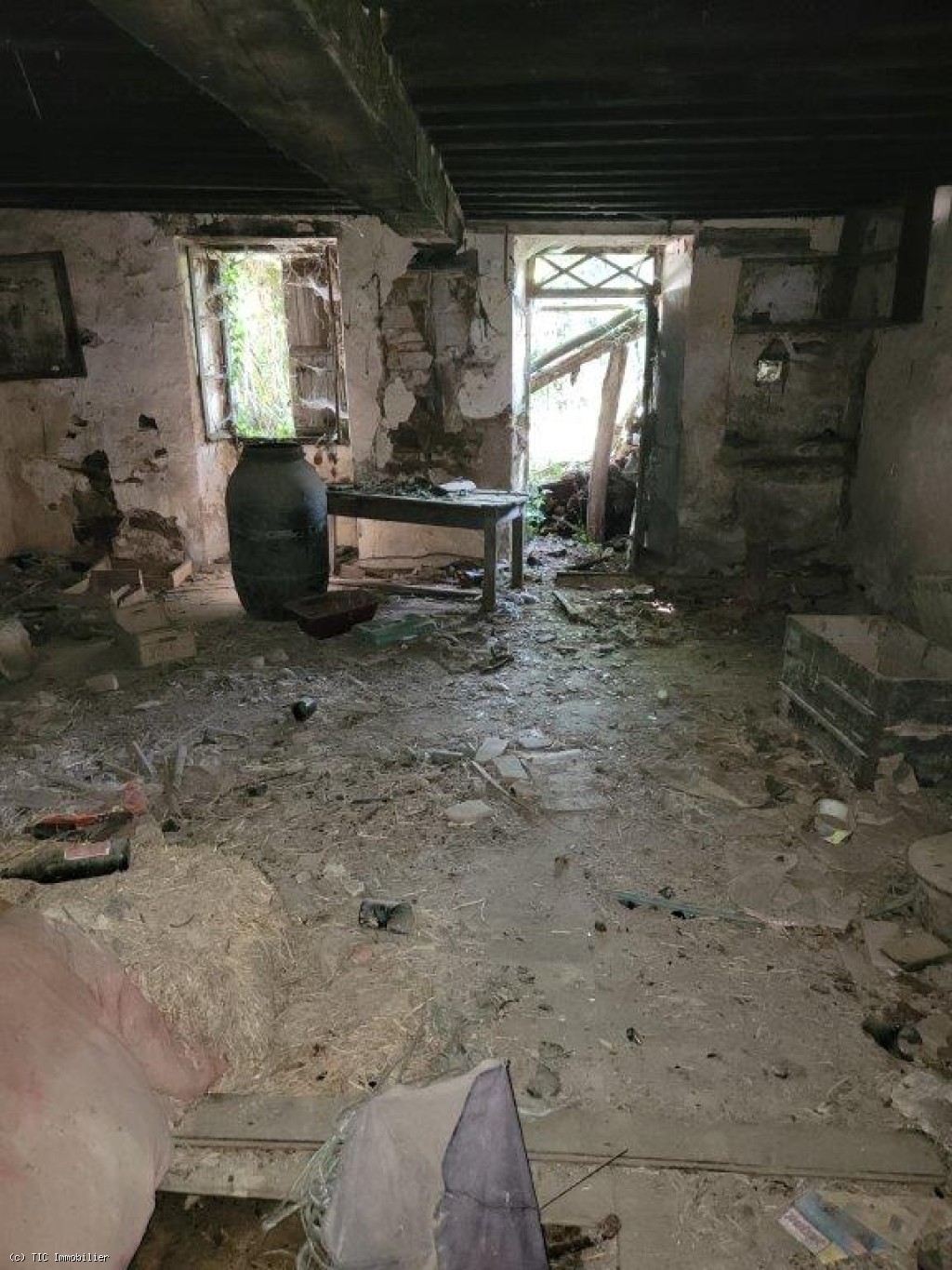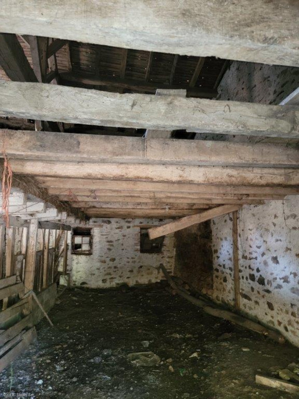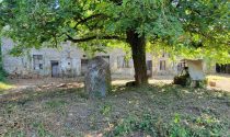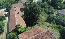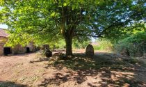 Two old cottages in very poor condition, a barn in average condition, hangar in poor condition, walled garden, square formation with a very old linden tree and a monolith (protected).