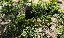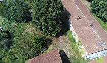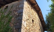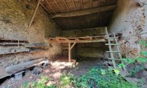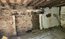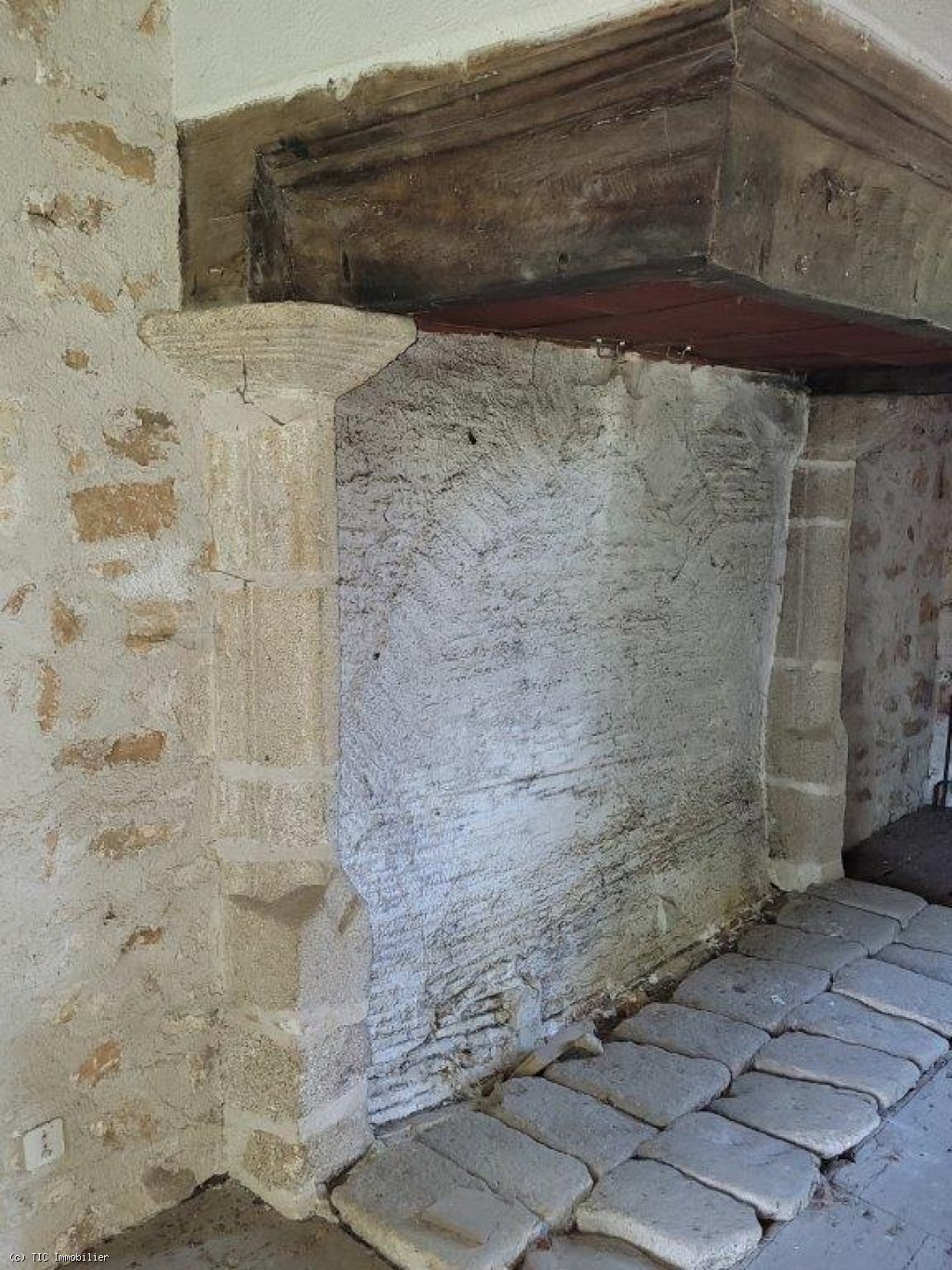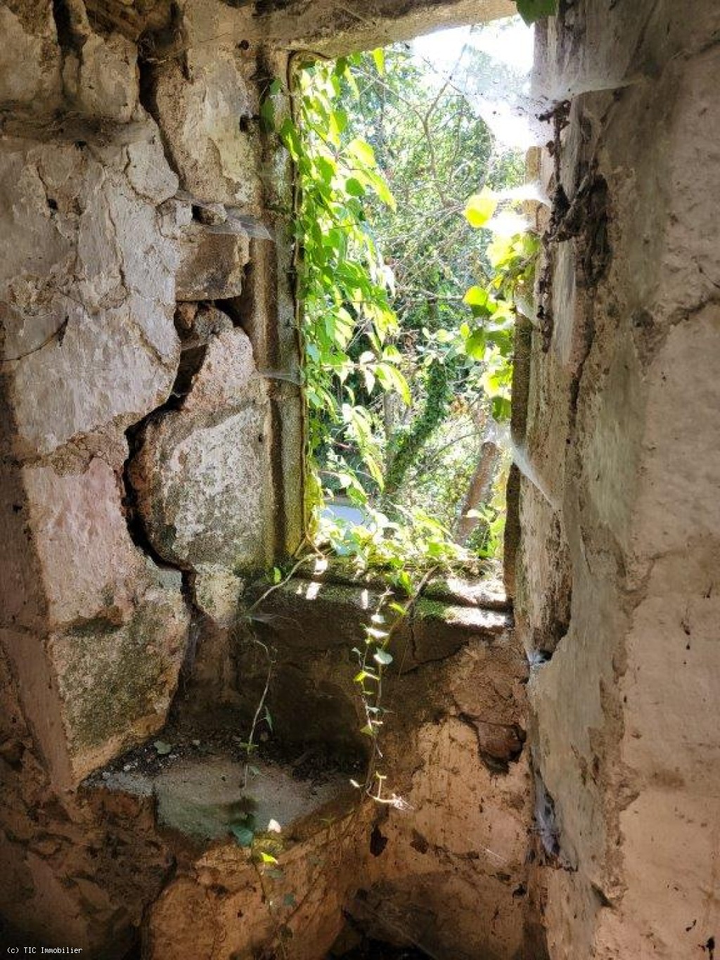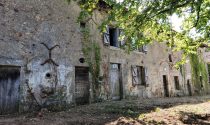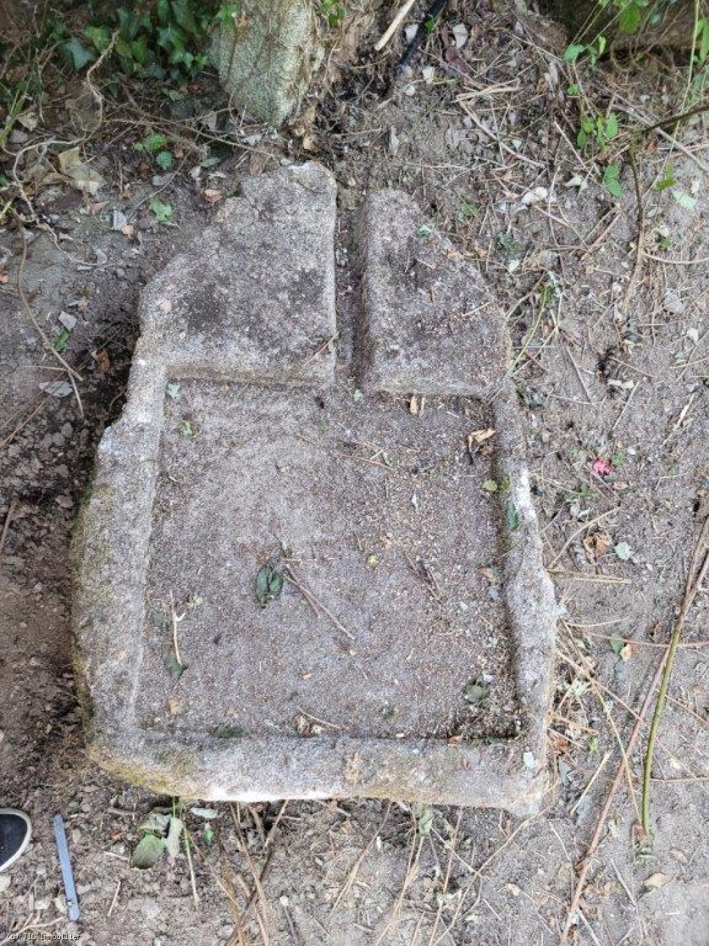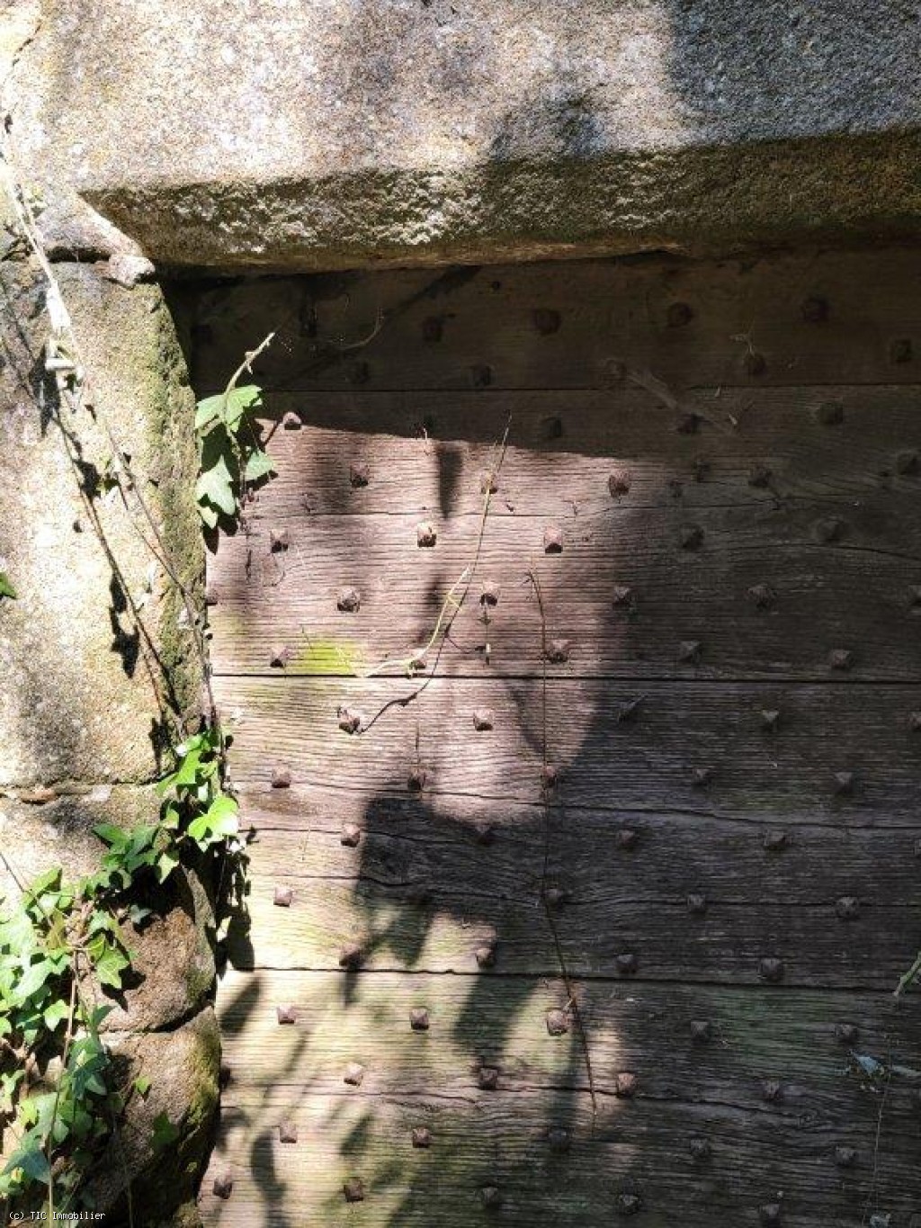 Two old cottages in very poor condition, a barn in average condition, hangar in poor condition, walled garden, square formation with a very old linden tree and a monolith (protected).