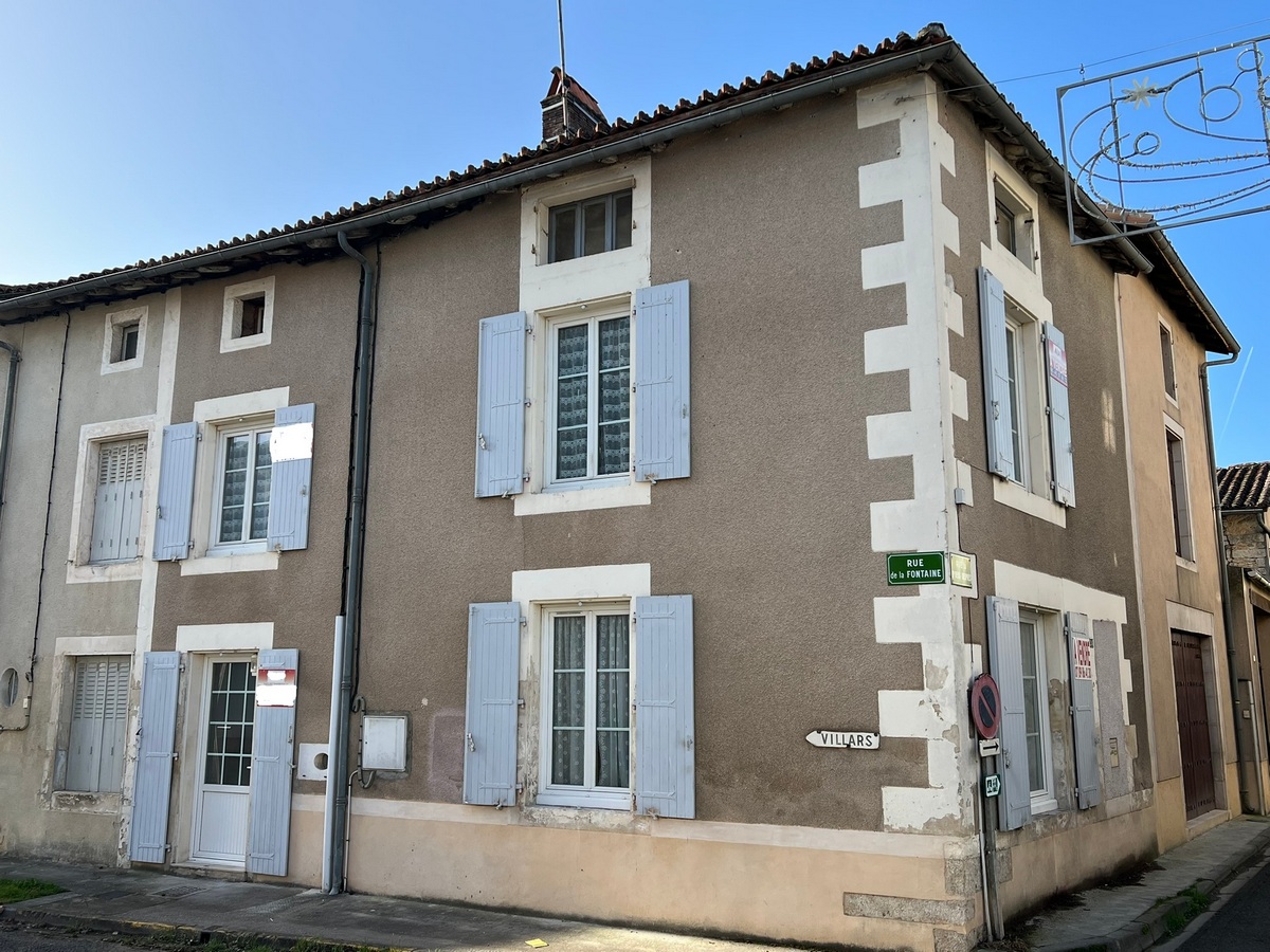 A restored house located in the pretty village of Verteuil-Sur-Charente. The house has double glazing, central heating with an electric boiler and it is connected to the mains drainage. On the ground floor a fitted kitchen with dining area, a bright living room with 2 windows.