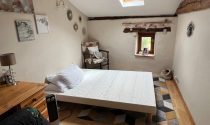 - a landing (5m²): wooden floor, stone walls; (one low beam)