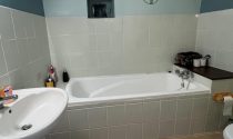 - a bathroom (5m²): tiled floor, bath, sink, WC;