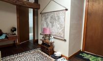- a lounge (30m²): wooden floor, wood burner, stone walls;