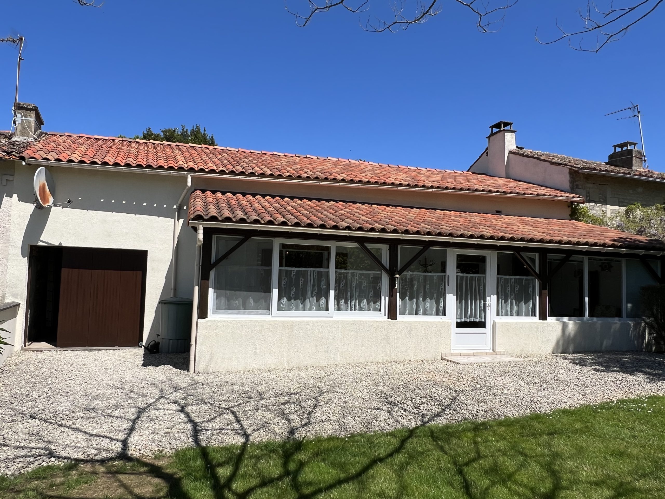 With a 14 minute drive to Chef-Boutonne, tucked away at the end of a quiet lane, this lovely countryside home offers a tranquil lifestyle with beautiful open views over the surrounding fields. The house features two spacious bedrooms and a mezzanine currently used as a third guest bedroom.
