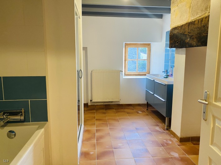 This lovely property, renovated with lime and hemp is naturally calming with it's gentle, neutral colours. On the ground floor, there's a downstairs bedroom, bathroom and a lovely large kitchen diner plus a further living room. Upstairs, there's a further two bedrooms with a WC and a convertible attic to finish the property off with a nice bedroom or bathroom. The kitchen has been left very simple, ready for you to make it exactly to your taste.