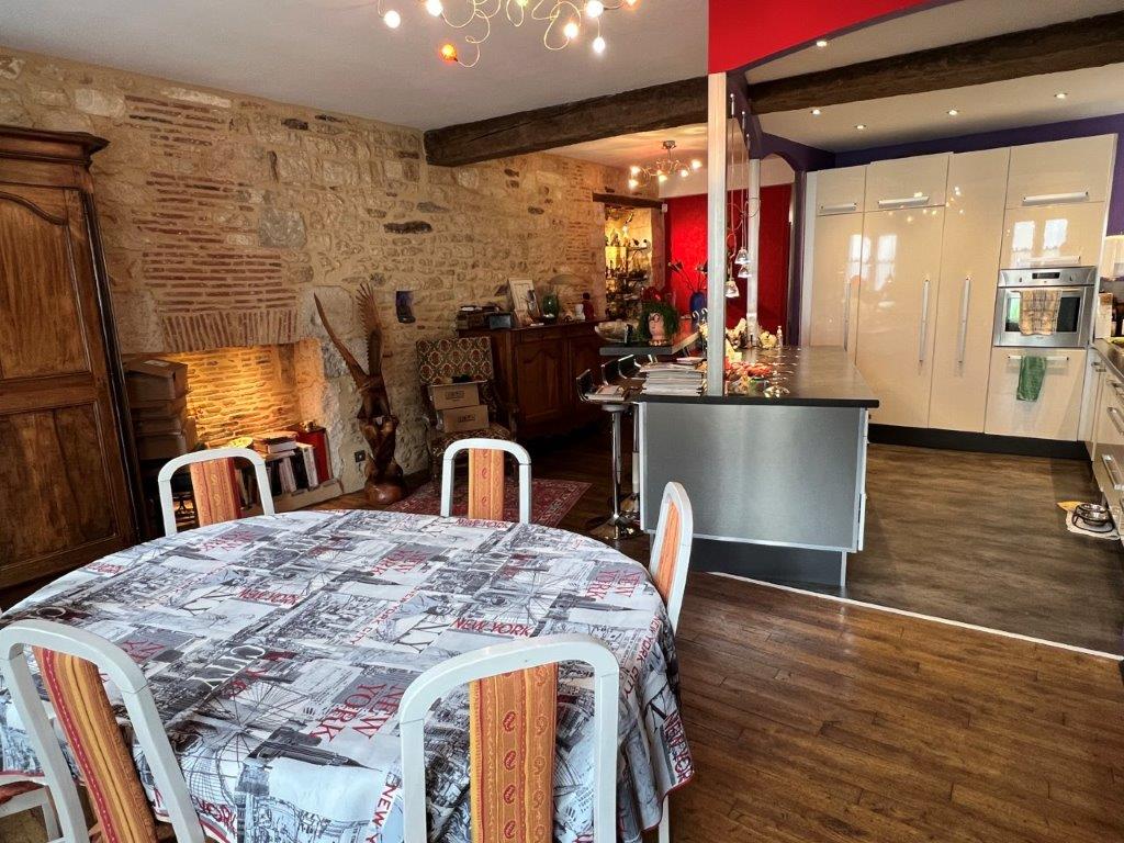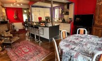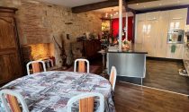 -Fitted kitchen/dining room (39,21m²): wooden floor, stone and exposed beams