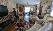 -Living room (35,9m²): parquet floor, bay window leading to the veranda