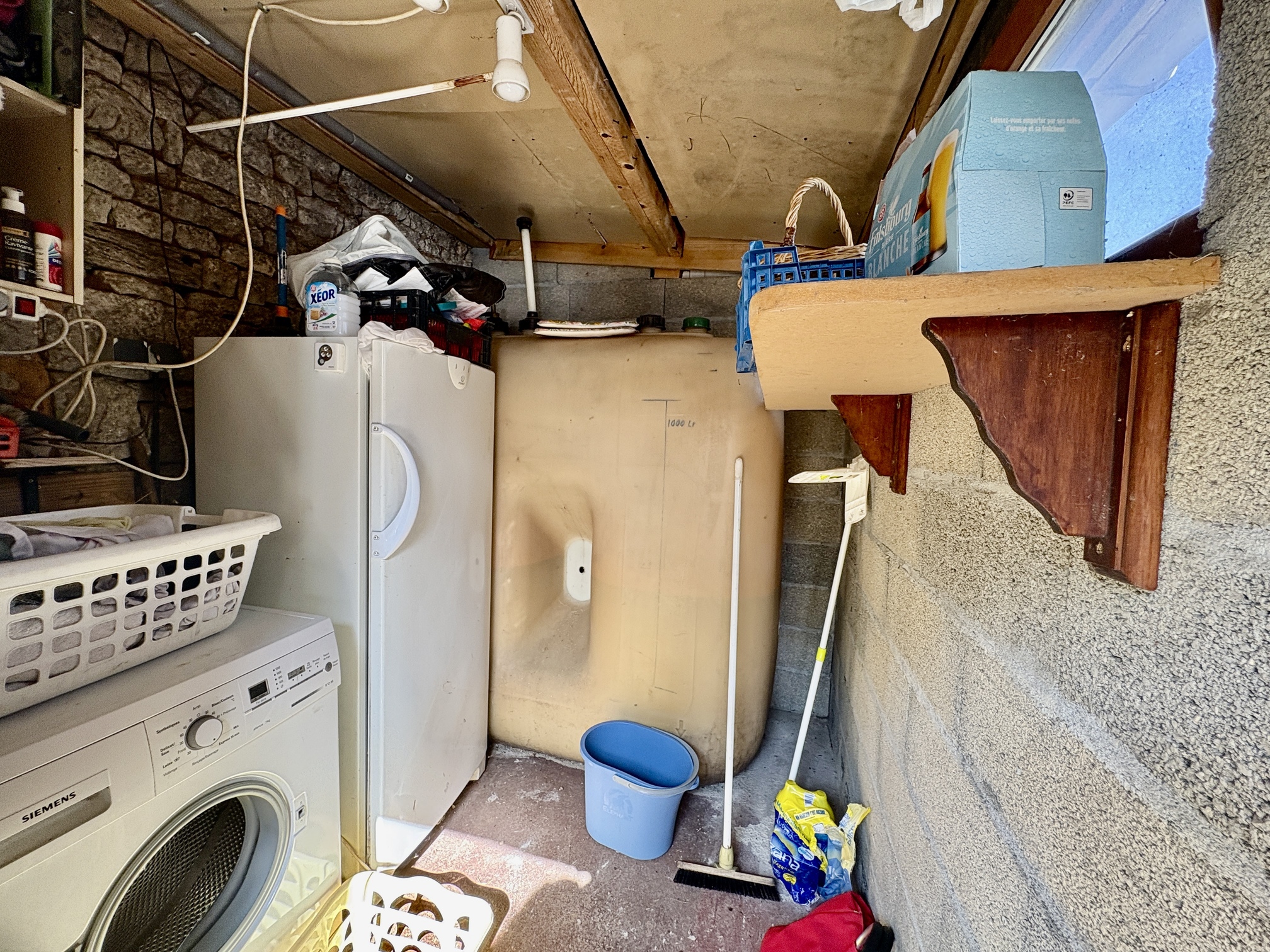 Living Room: 29,05m², tiled floor, fireplace with wood-burning stove, original stone sink and French door leading to the terrace