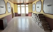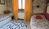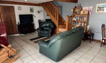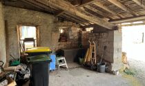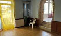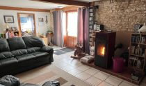 -Living room (29m²): tiled floor, pellet stove, exposed stone