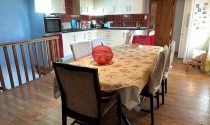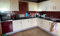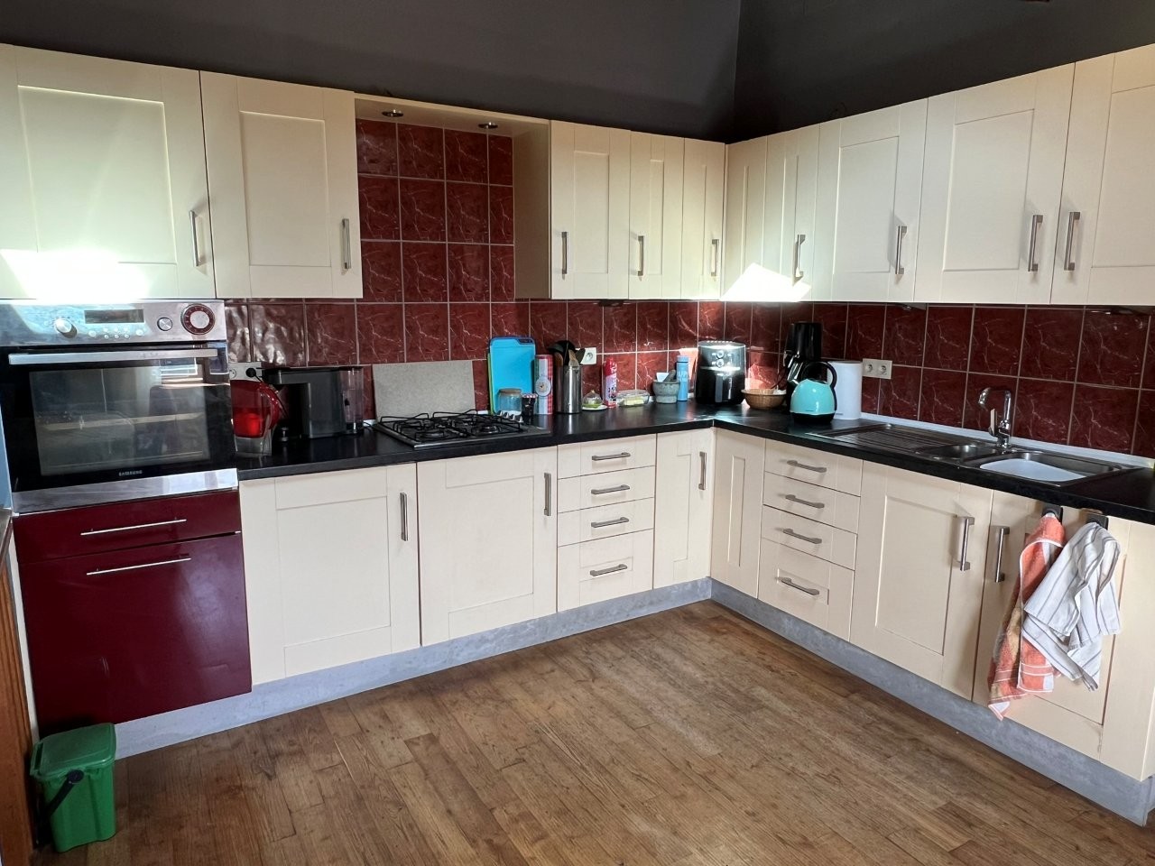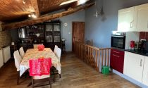 -Kitchen (30m²): wooden floor, exposed stone, fitted, velux window x 2