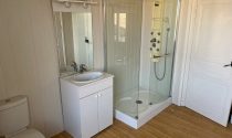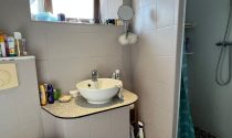-Shower room (8m²): parquet flooring, shower, WC, washbasin, cupboard