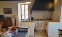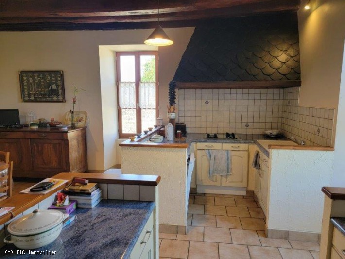 -Fitted and equipped kitchen (29m²): tiled floor, closed fireplace