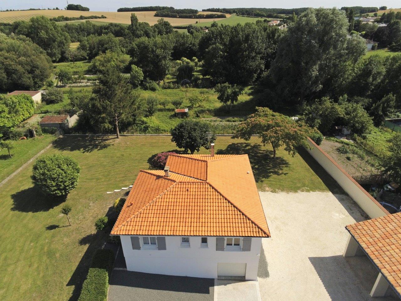 Very attractive three-bedroom (one bedroom in teh basement) detached house with basement and lovely, well-kept garden. The house is in immaculate condition, has air/water heat pump central heating (installed in 2022), is connected to mains drainage, has double glazing to all windows, electric shutters, the roof is in good condition and has recently been cleaned, teh energy efficiency is fantastic (DPE in C) and has a non-attached outbuilding (carport) large enough to park 3 motorhomes and with 3-Phase electricity! The property is located in the town of Aigre (less than 1h30 from the sea) where you will find all the shops and schools you need all within a short walk.
