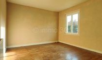 On the ground floor, the main house features a spacious entrance hall of 10.80 m² with a built-in cupboard and staircase leading to the first floor. This leads to a bright 26 m² living area with a dining space laid with wooden flooring and a tiled kitchen area fitted with storage units and an open fireplace. A hallway then gives access to a comfortable 16.30 m² lounge, two large and light-filled bedrooms with parquet flooring measuring 16.80 m² and 17.50 m², as well as a shower room with WC.