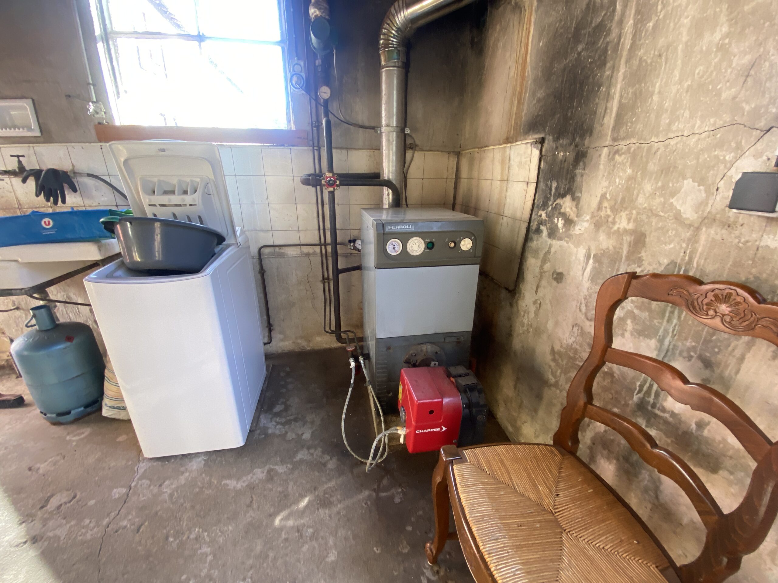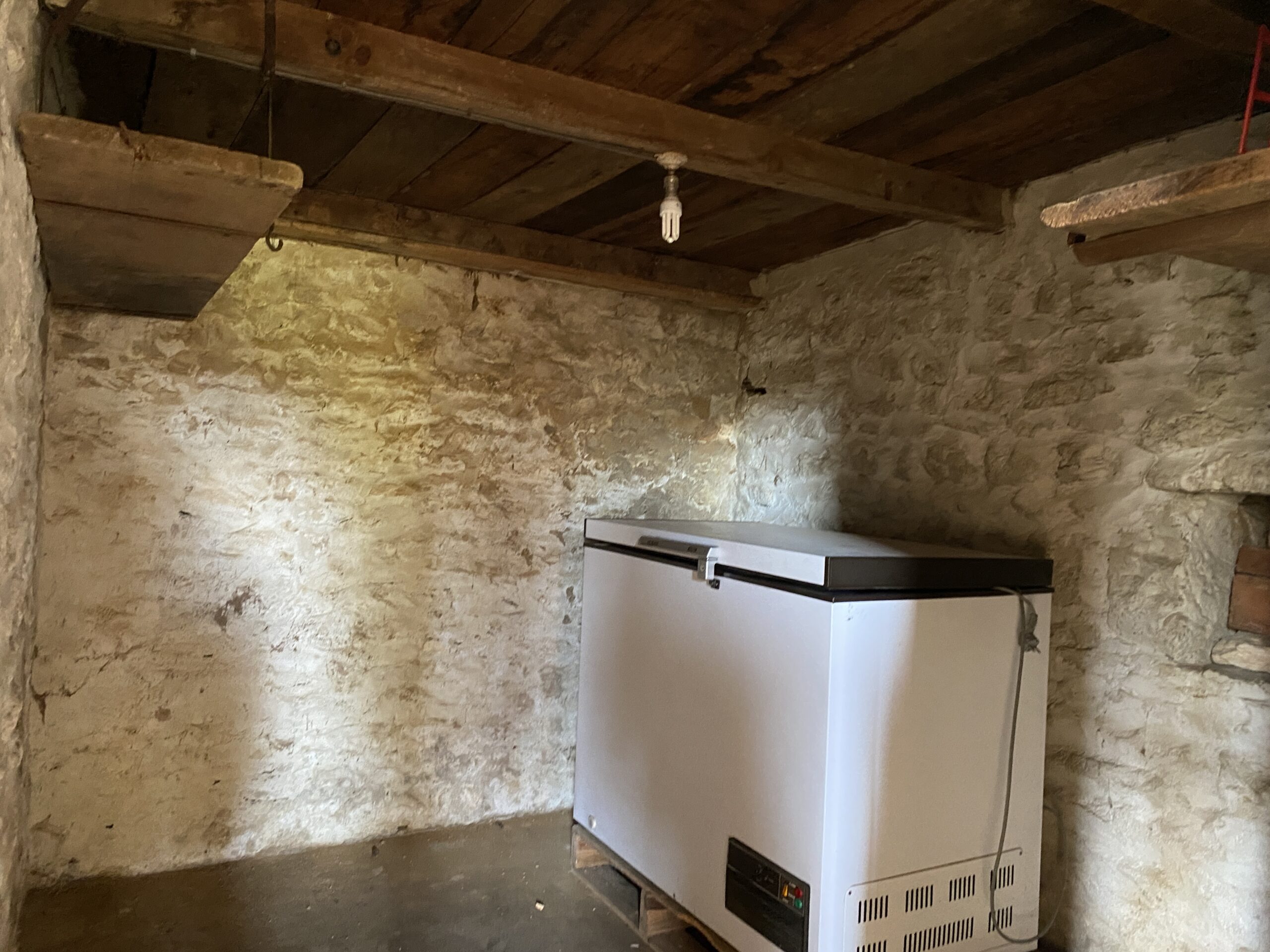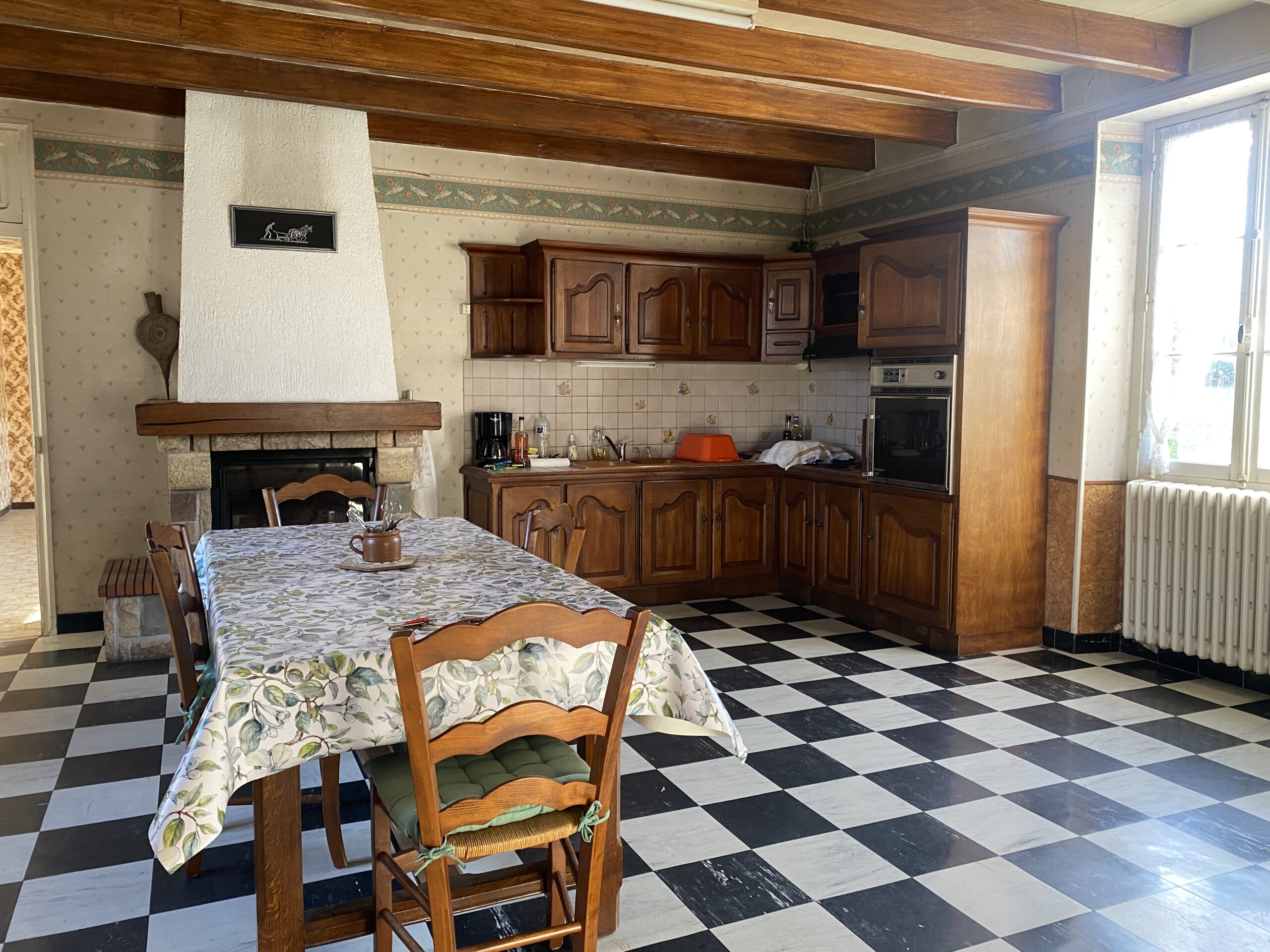 Kitchen : 30,24m2, tiled floor and woodburner
