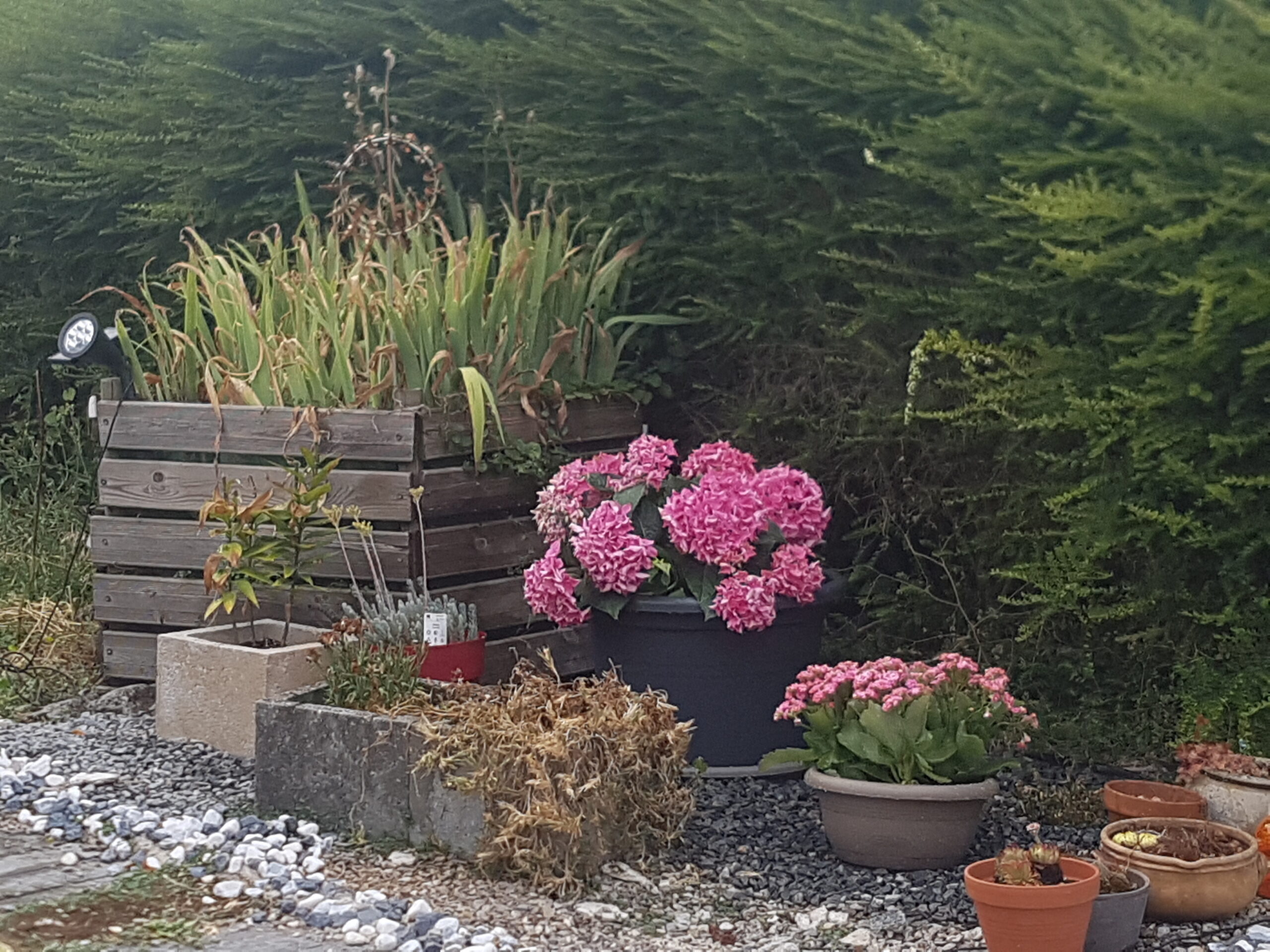 Externally, there is a large hangar and spacious garage with electricity supply which sits within a fully fenced (dog friendly) 1.311 m2 plot with freshly gravelled driveway and garden laid mostly to lawn with mature trees, shrubs and hedge. Plenty of room for a veg plot and swimming pool if you desire (subject to permissions). Mains supplied external lighting has been fitted.