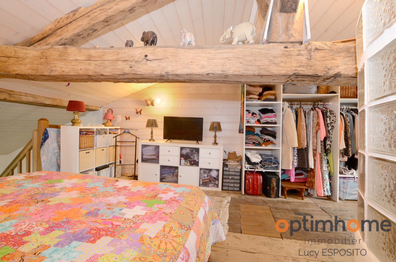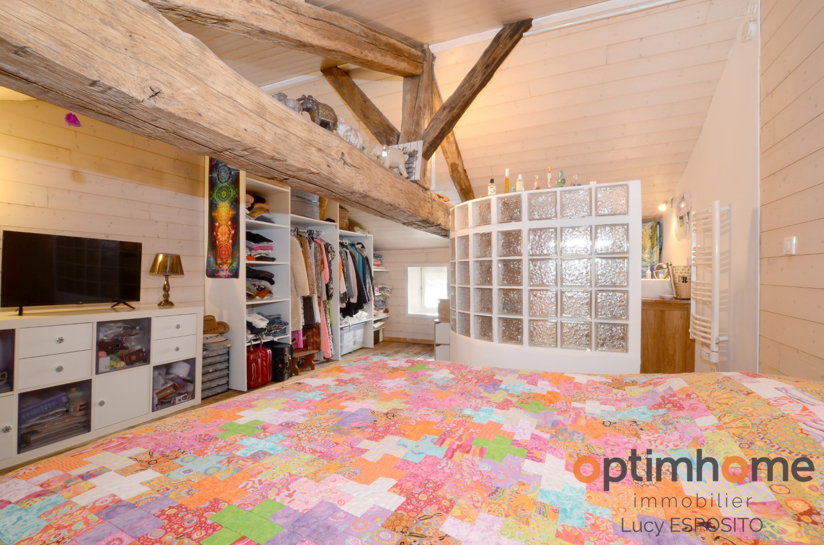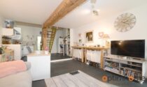 Upstairs, you will find a spacious open-plan bedroom with an attached bathroom and basin, creating a comfortable and characterful living space.