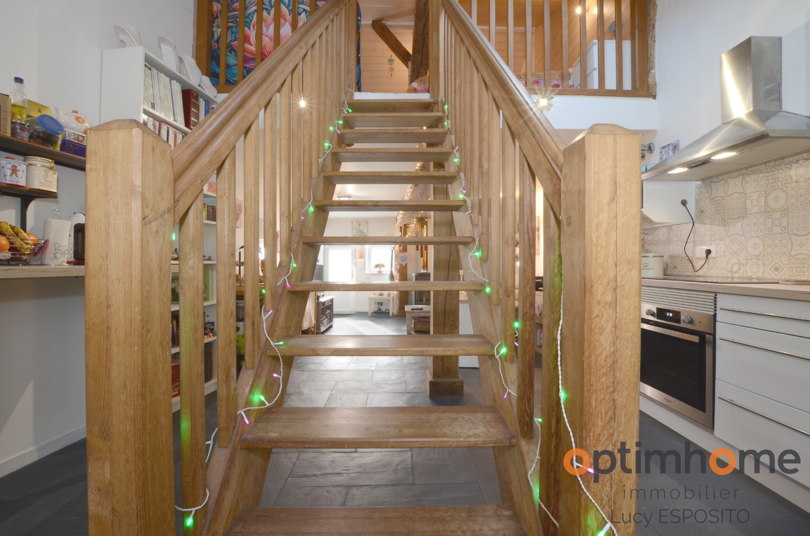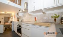 The ground floor offers a large open-plan living / dining / kitchen area, featuring a newly fitted and fully equipped kitchen. A large wood-burning stove efficiently heats the entire house. There is also a downstairs WC with space for a washing machine.
