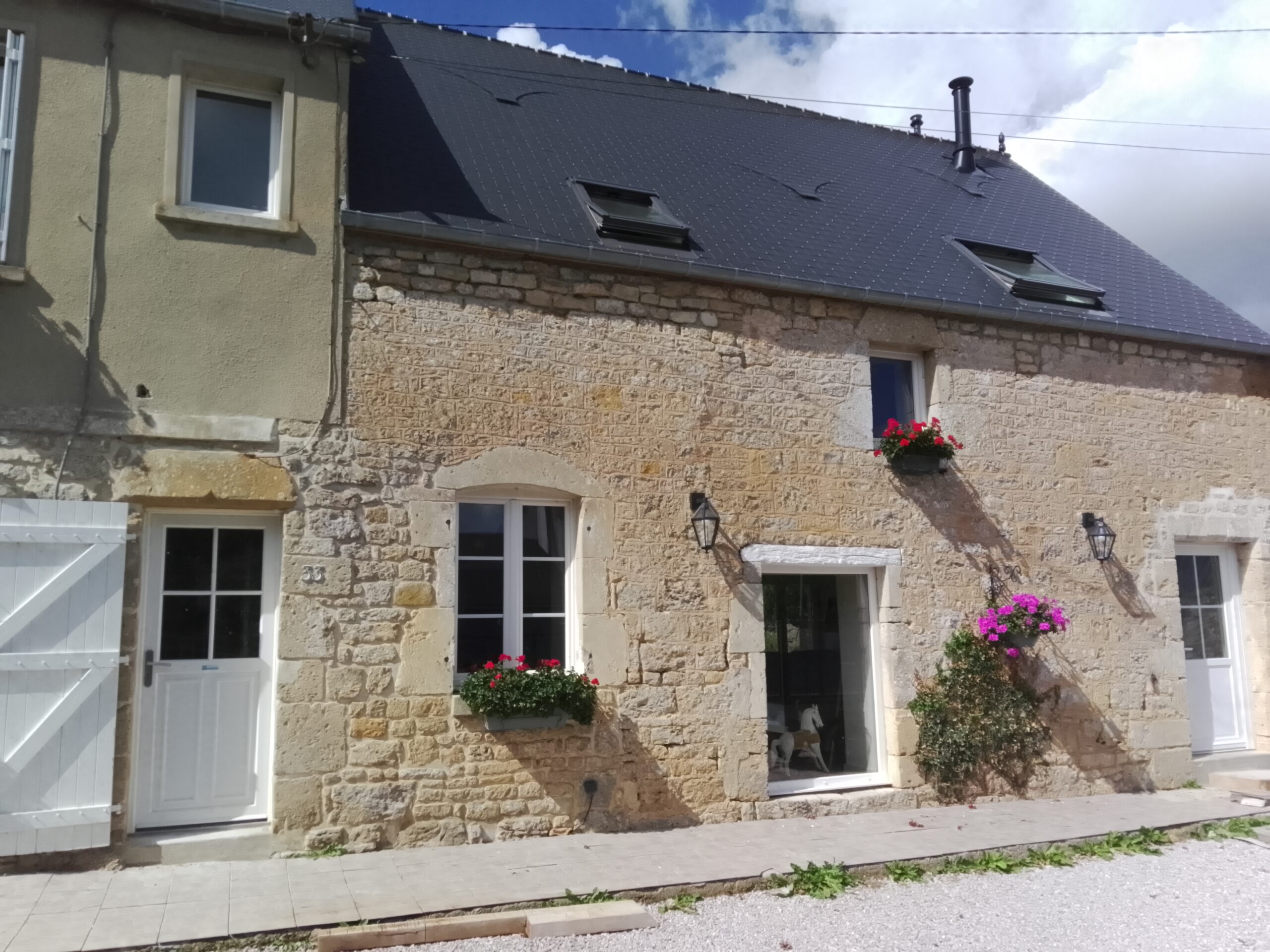 Fully renovated stone house comprising two separate dwellings and a garage, located in a hamlet near the village of Picauville and 15 minutes from the beaches.